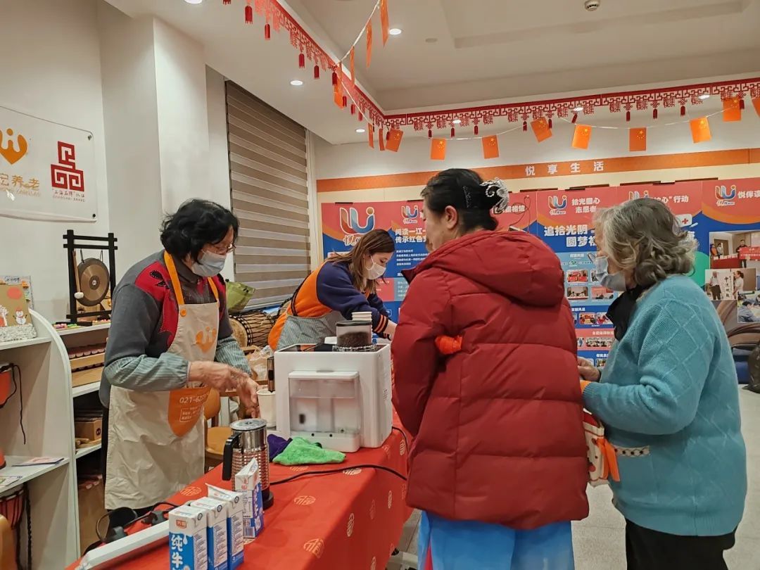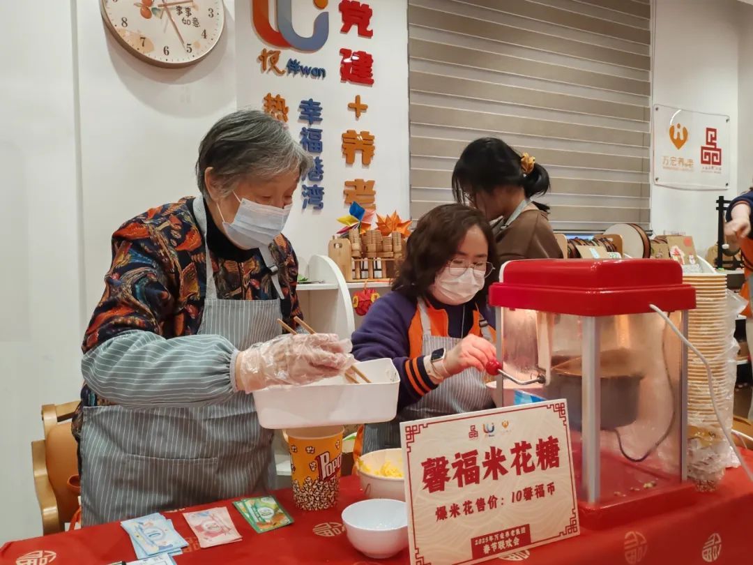 拿着游戏币,老人们便来到市集摊位上“消费”,换取心仪之物,包括寓意吉祥的福字、香气扑鼻的热饮、色彩缤纷的小物件、新鲜诱人的水果串、甜蜜的米花糖与爆米花,以及珍贵的照相留念服务等。