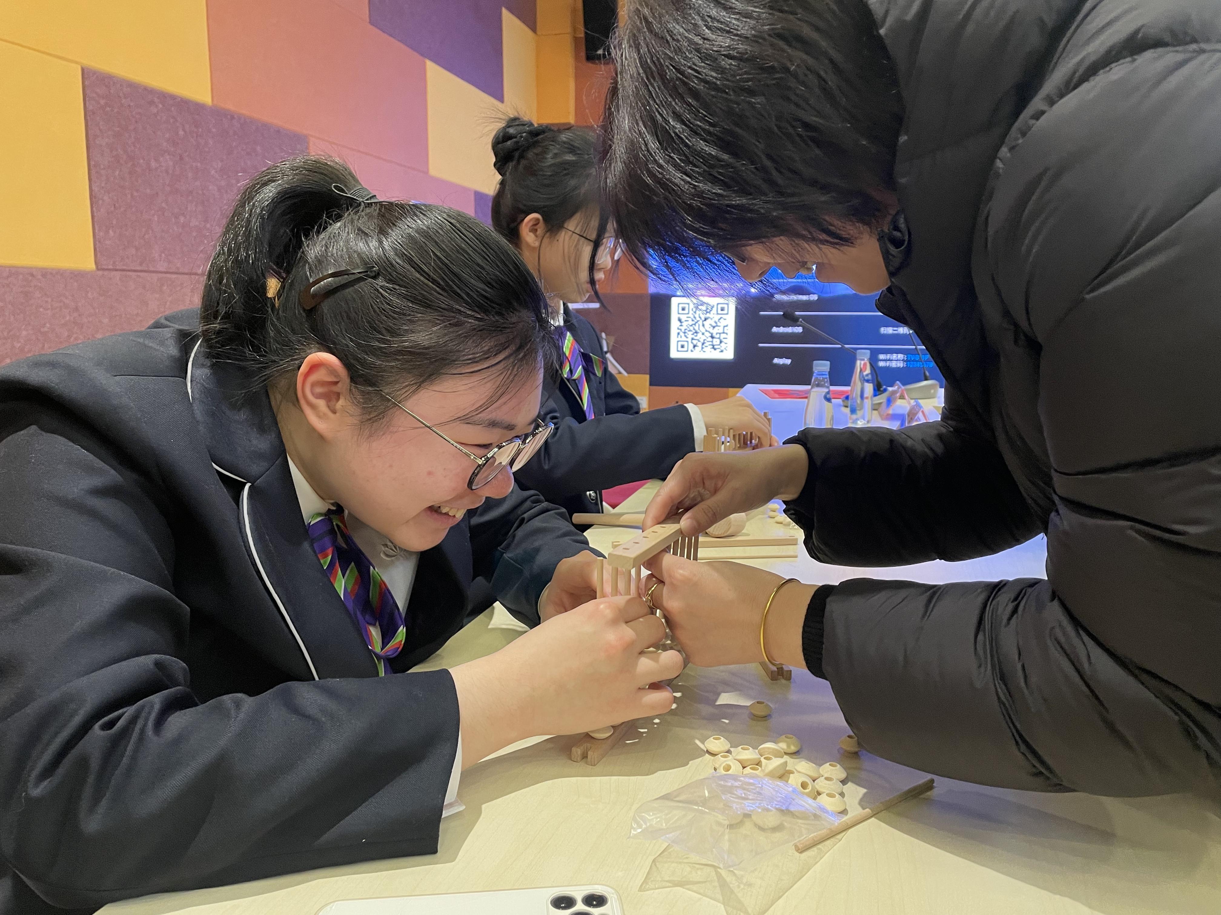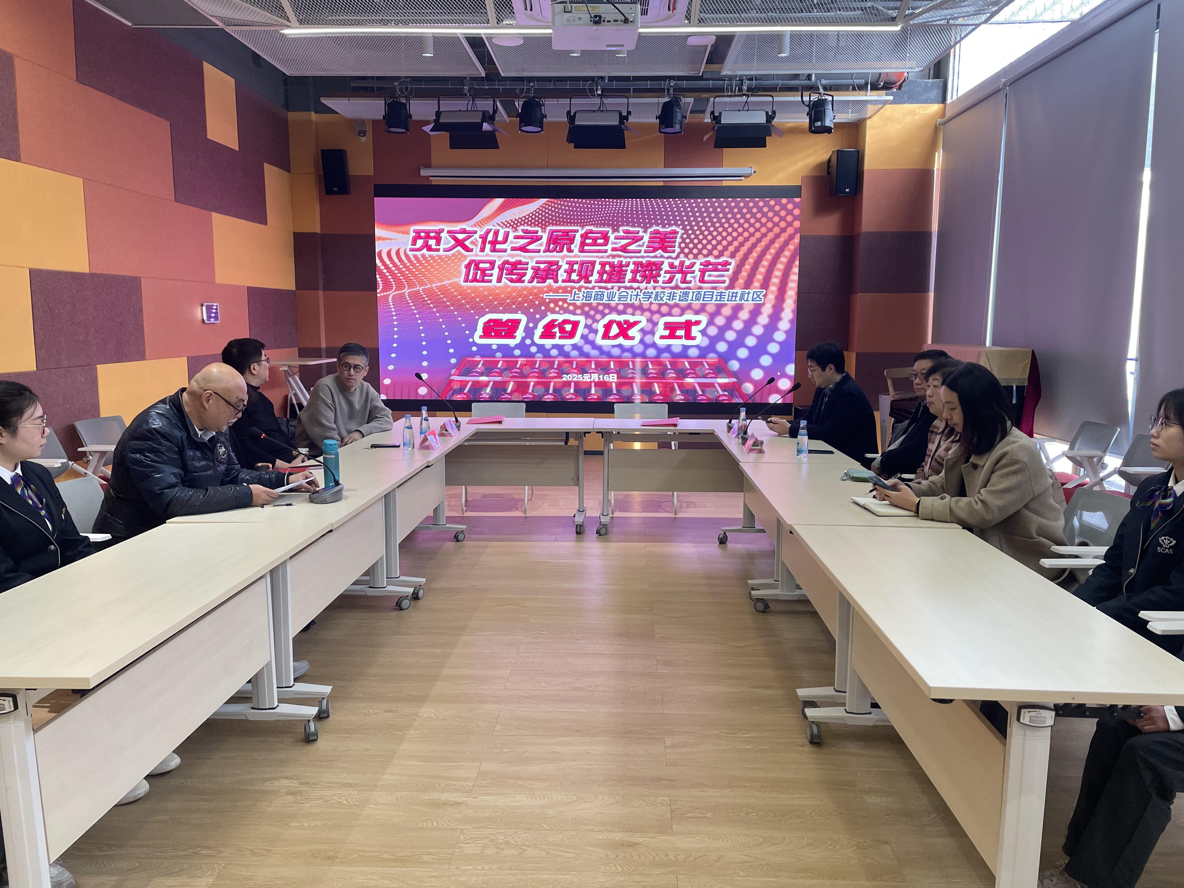 活动的高潮部分莫过于上海商业会计学校非遗项目走进社区签约仪式暨首场非遗手工活动。上海商业会计学校财会教学部副主任顾非非详细介绍了非遗算盘的历史地位和制作技艺,让在场的居民们对非遗文化有了更深入的了解。