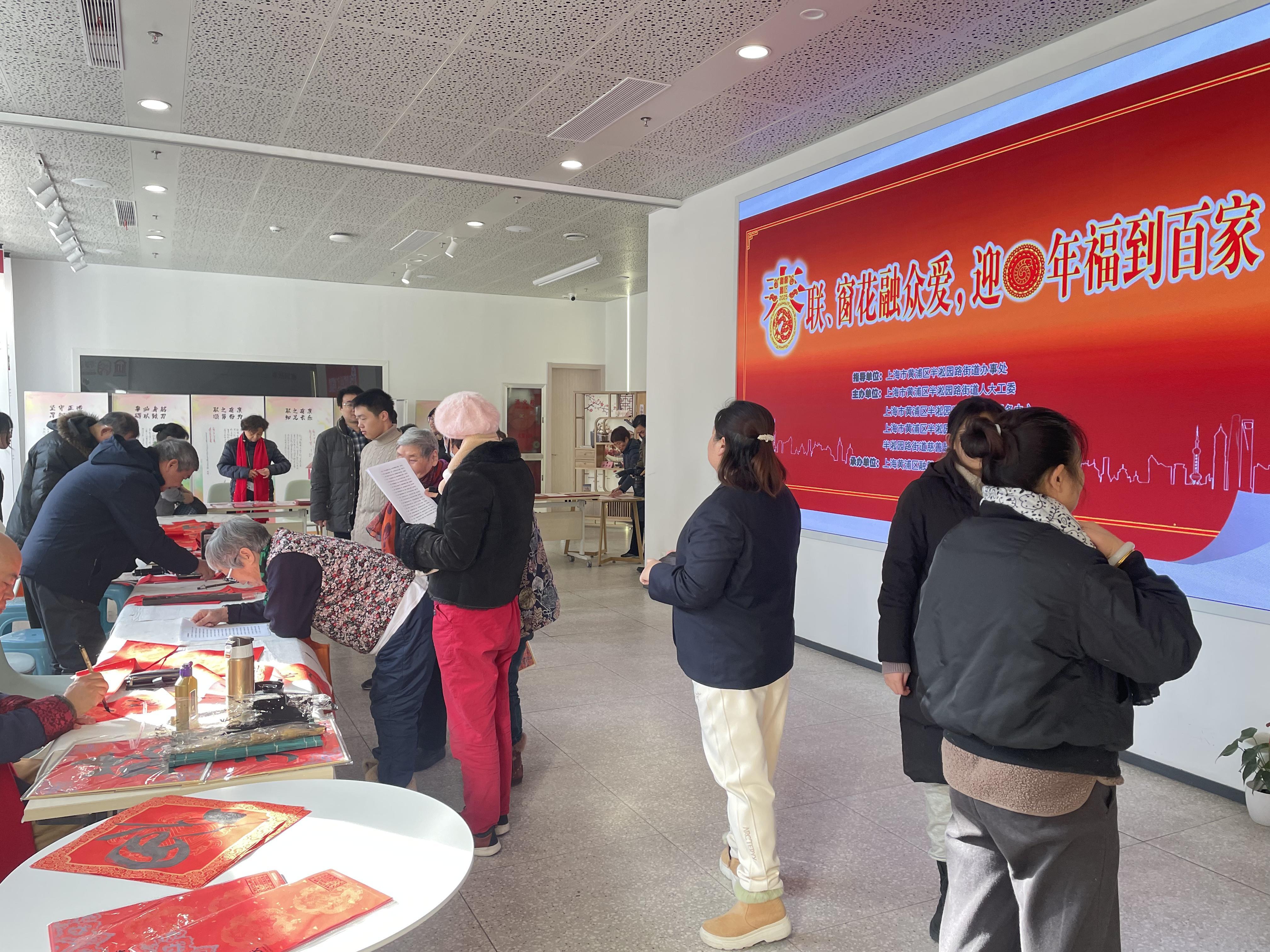 随着春节的欢快脚步愈发临近,近日,半淞园路街道举行“春联、窗花融众爱,迎蛇年送福到百家” 新春活动。活动现场张灯结彩,处处弥漫着浓浓的年味。