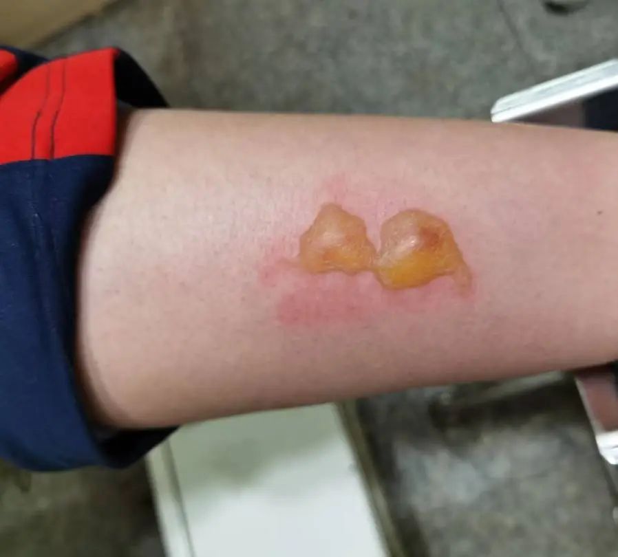 如果皮肤出现水疱,务必保持水泡皮完整,不要自行挑破水疱以免感染。可先用碘伏消毒后无菌纱布简单包扎后及时就医。