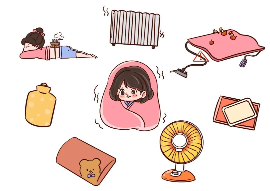 使用取暖设备时要控制使用时间、使用距离和注意隔热。如果觉得有点“烫”或者发痒,就要警惕低温烫伤,必须立即停止使用。