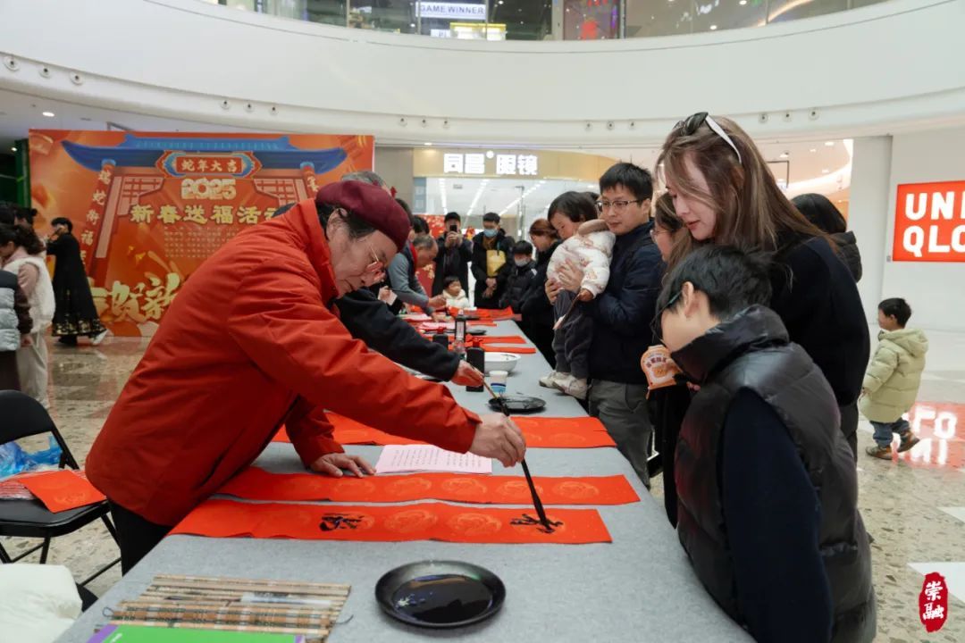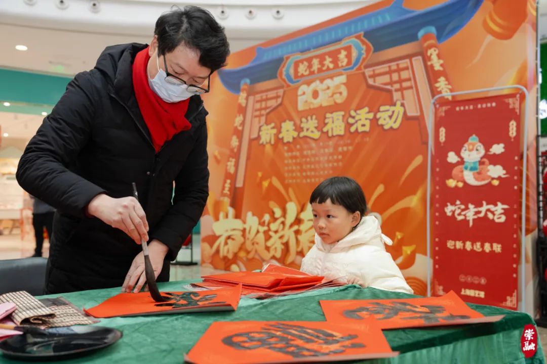 即将到来的2025乙巳蛇年,是首个“世界非遗版”春节。1月19日,区文化旅游局围绕各色传统年味,在崇明万达广场举办了一场“瑞蛇衔福至·墨香送春来”2025新春送福活动。来自崇明书法家协会、摄影家协会、美术家协会的艺术“大咖”们齐聚一堂,为市民朋友们送画、送春联、送“福照”,让他们在浓浓的年味中感受崇明独特的年俗文化。