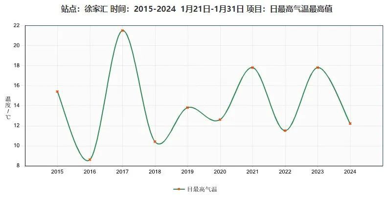 上海周三和周四还是多云为主的天气,回暖状态持续,周四的最高气温甚至可以迈向17度。从过去10年的气象资料来看,有三年出现过1月下旬日最高气温≥17度的情况,其中2017年甚至达到了21.5度。
