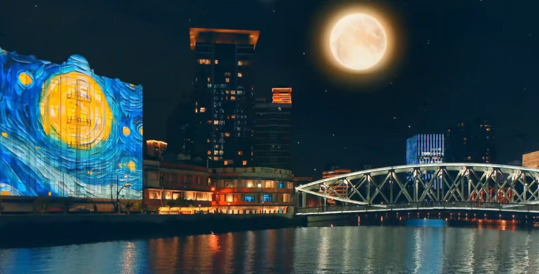 2023年,首届“闪亮·上海”2023静安国际光影节以慎余里、天后宫等地标建筑为“点”,演绎396场沉浸式互动光影秀,让苏河湾成为中秋、国庆“双节”期间上海最火爆的城市地标,全网点击量超过20亿。