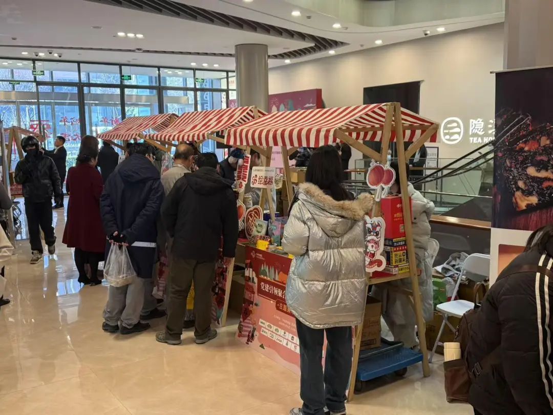 集市汇聚了豫园股份、淮海集团旗下老字号品牌以及东浩兰生集团、市消费帮扶馆黄浦馆带来的对口帮扶地区的优质产品。琳琅满目的商品不仅满足了楼宇白领的购物需求,更成为传递地域文化与爱心帮扶的重要纽带,现场热闹非凡,年味十足。