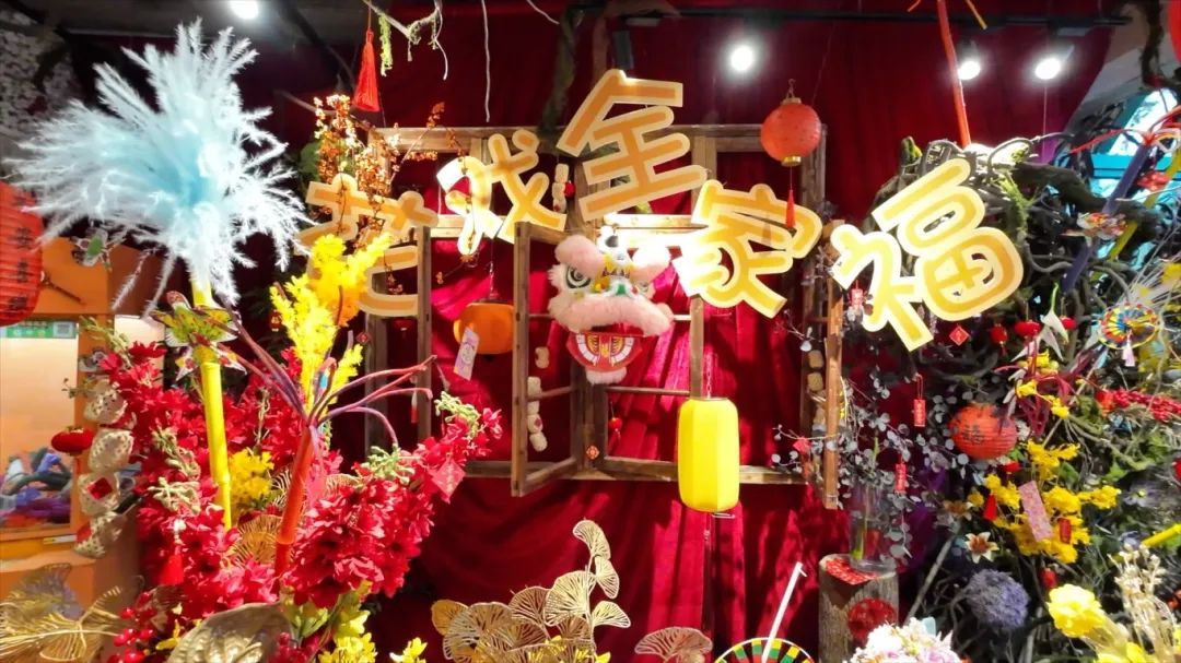 还有很多新年道具摆设,舞狮、灯笼