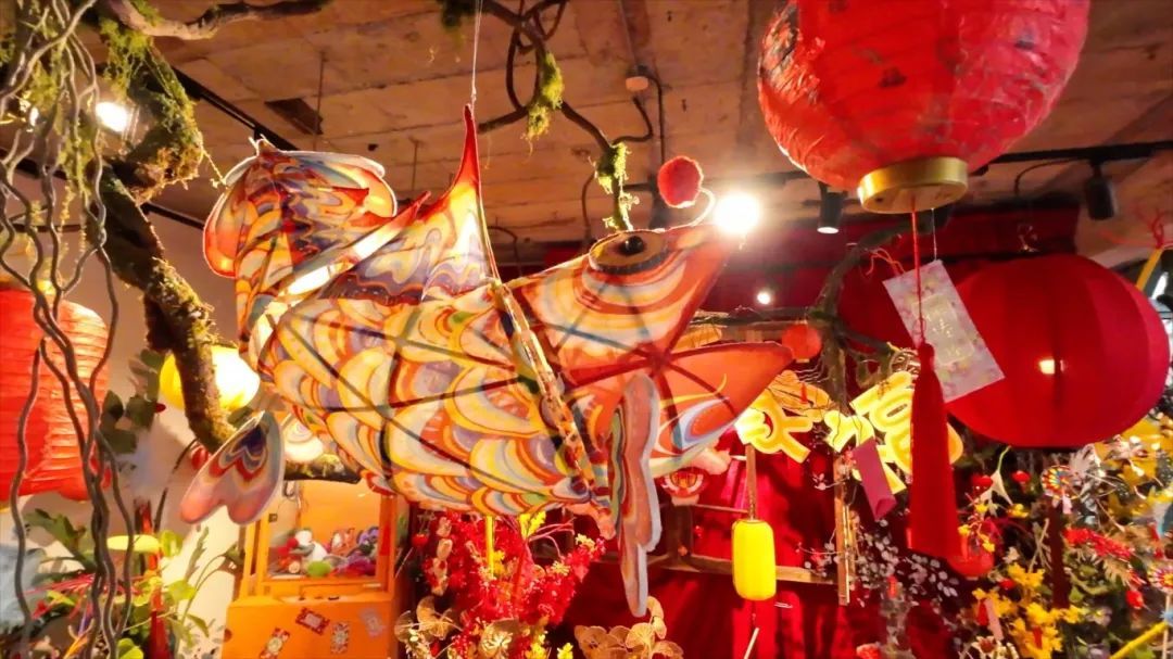 一盏盏造型各异的鱼灯高悬在空中