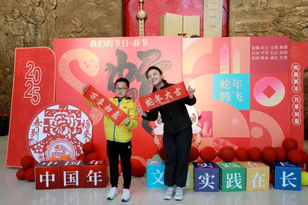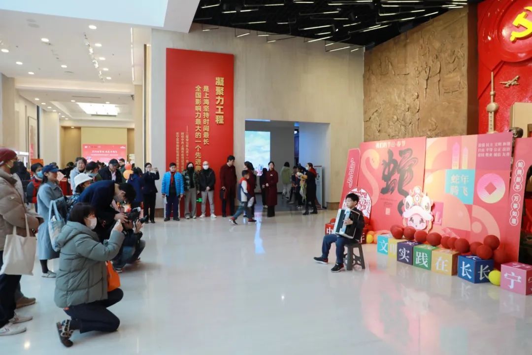 “闹猛额!好白相!”中午时分,博物馆内人头攒动,众多市民前来参与有趣的民俗活动,一同感受节日的喜庆氛围,小朋友们还和属地网络名人共同参与传播传统文化的文明实践活动。活动是一场新时代文明实践新成果的展示,更是一次与中国传统文化的零距离互动:孩子们在老师手把手指导下写“福”字、春联,在舞文弄墨之间研习中华优秀传统文化瑰宝;博物馆展馆内“典当弄”的摊位,其怀旧的特色环境和妙趣横生的糖人、面塑制作,让很多人回味小时候的“年味”……大小朋友们自己动手制作充满个性的手工DIY配饰、抓夹、年历等,定制专属蛇年幸运。