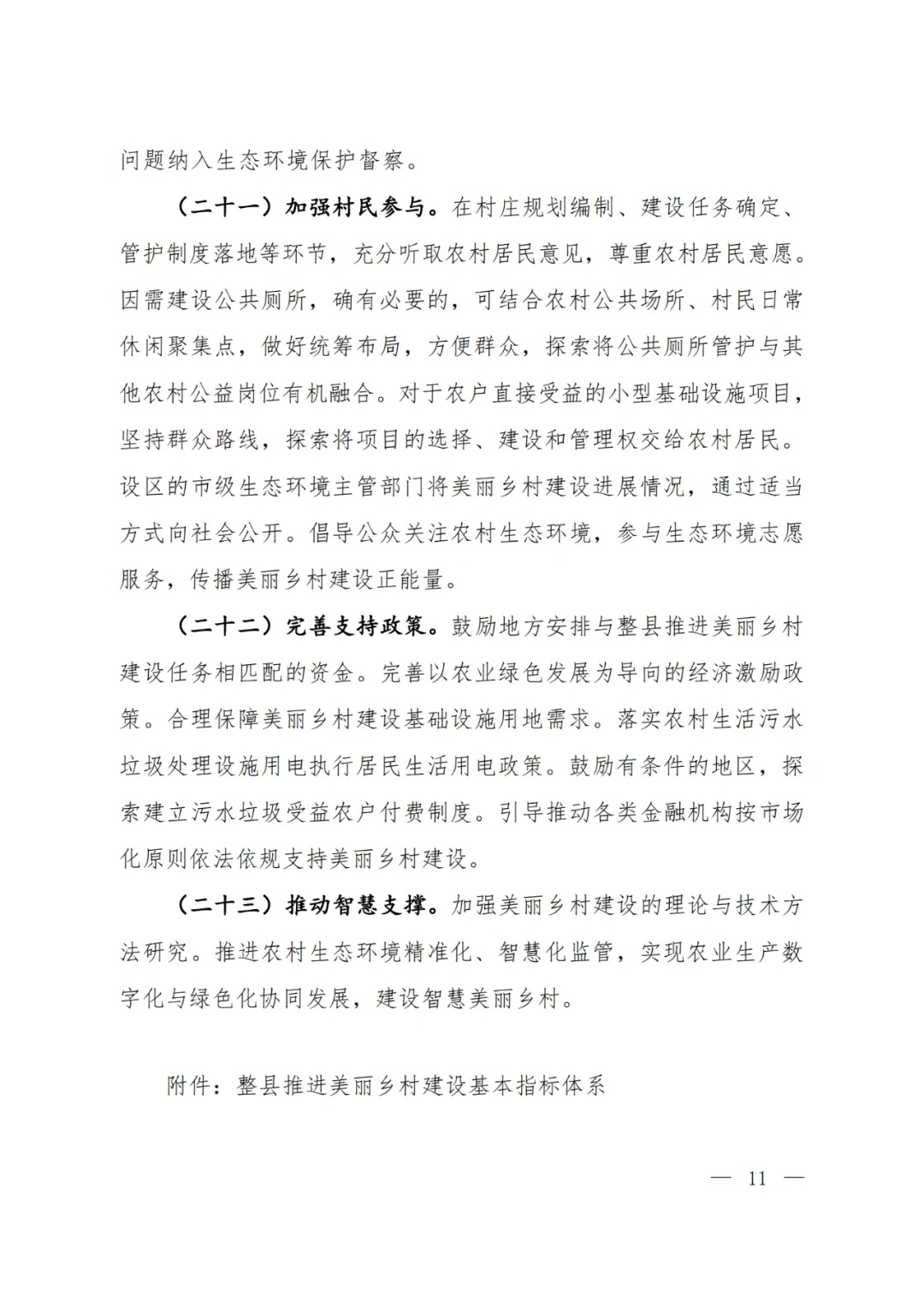 为贯彻落实《中共中央 国务院关于全面推进美丽中国建设的意见》,全面加强农业农村生态环境保护,推进美丽乡村建设,生态环境部、农业农村部、国家发展改革委、财政部、自然资源部、住房城乡建设部、水利部、市场监管总局、国家林草局组织制定了《美丽乡村建设实施方案》。