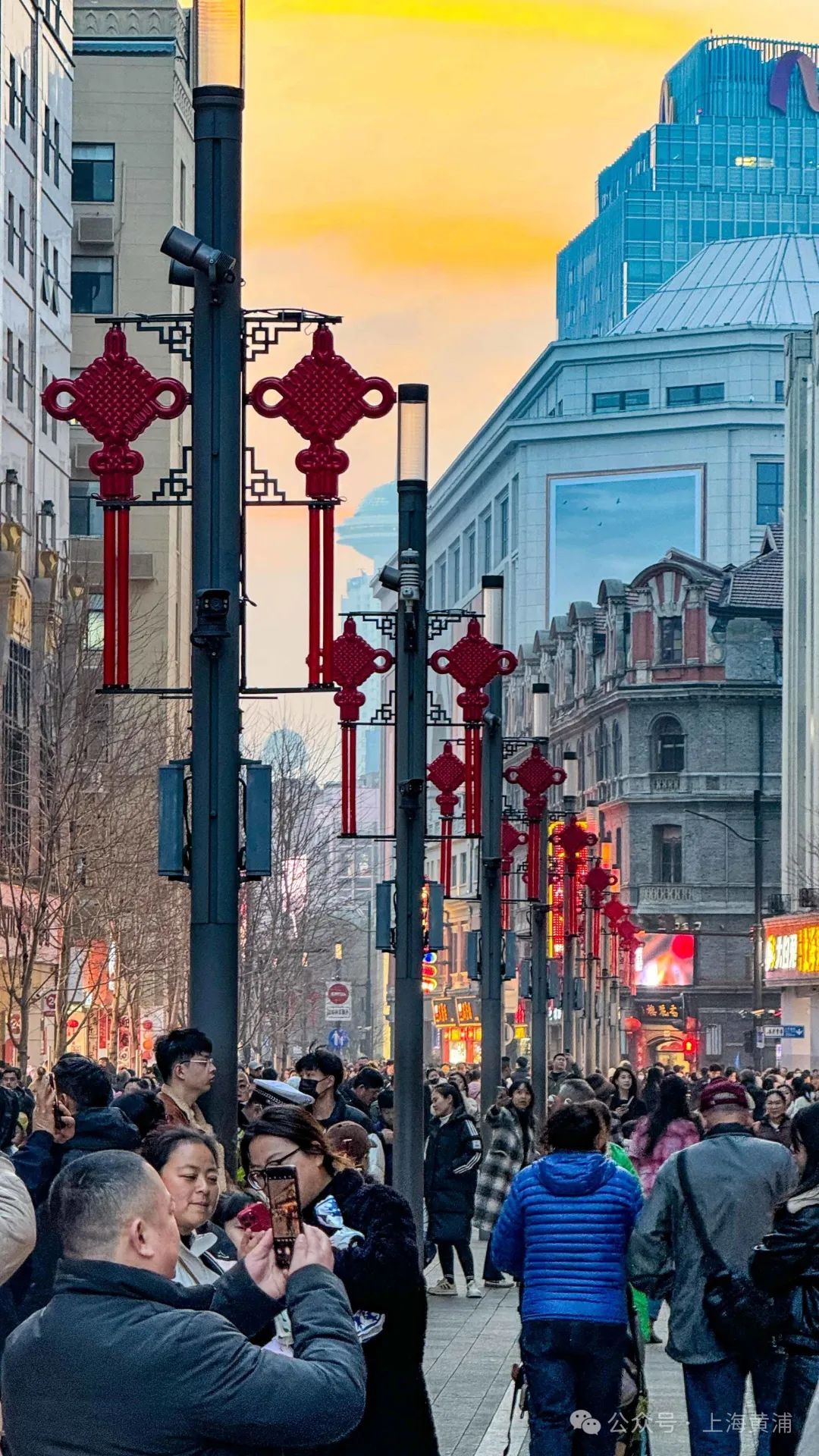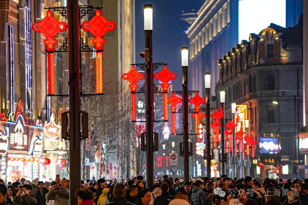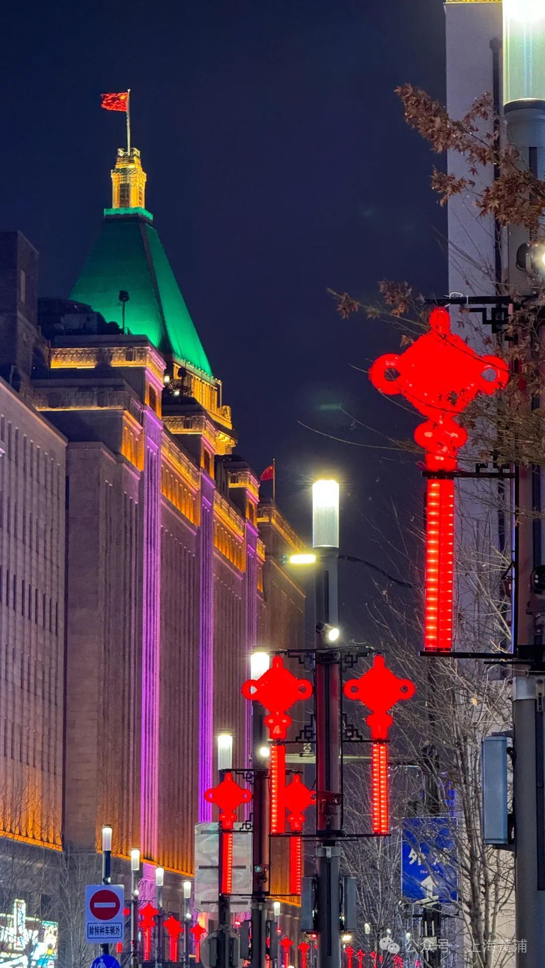 近日,南京东路步行街东拓段,一排“中国结”惊喜亮灯,整齐地挂在电线杆上,为节日前的南京路和外滩装点出浓浓的新春氛围,上海要过年啦!