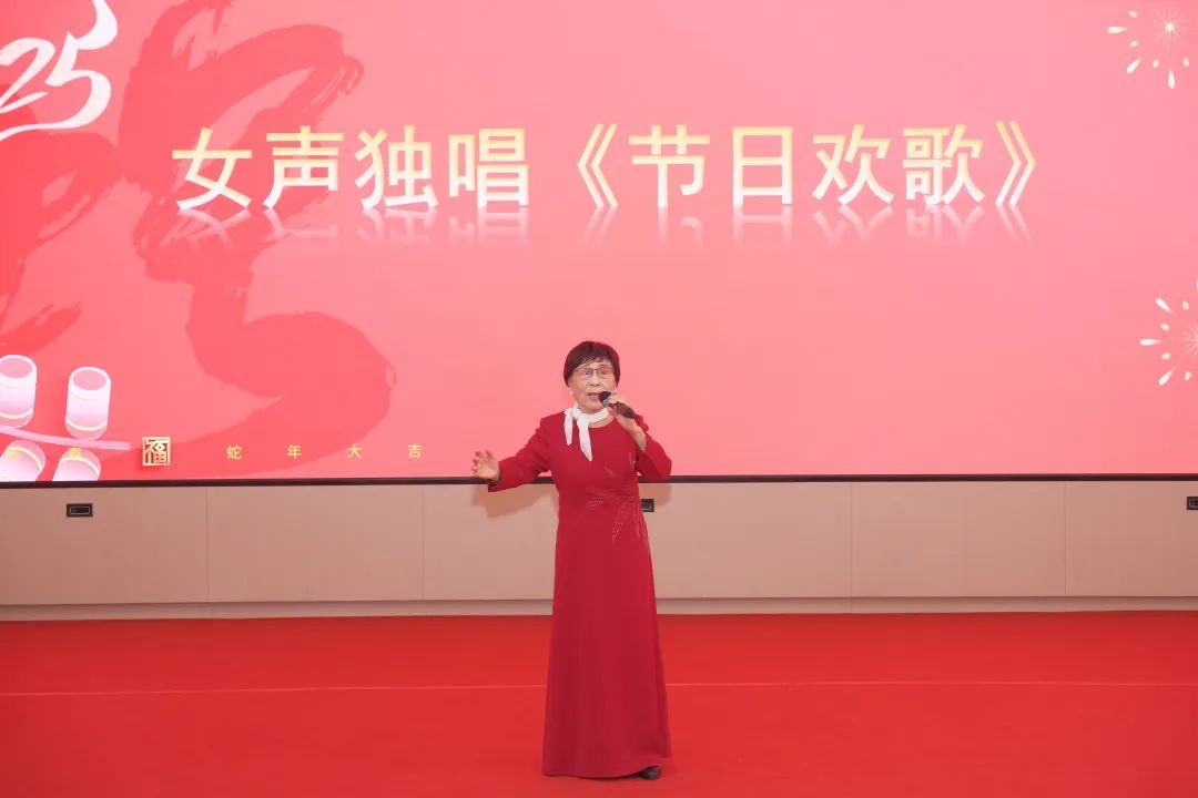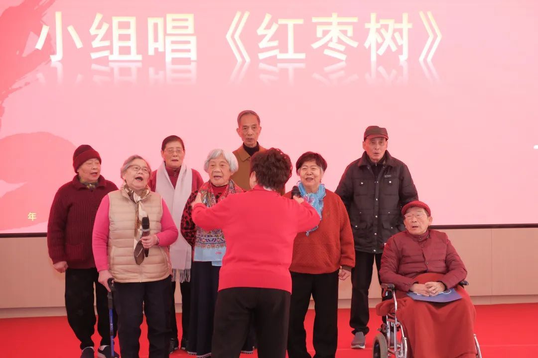 除了活力四射的舞蹈与典雅的演奏,新春联欢的舞台上从不缺少动人的歌声。合唱节目《红枣树》中,“银发歌手”们用深情的歌声表达了对过往生活的美好回忆。女声独唱《节日欢歌》更是将现场气氛推向了高潮,只见观众随着歌声轻轻摇摆,享受着欢乐时光。值得一提的是,小组唱和独唱的表演者都是乐龄汇养老院的长者,他们平时积极参加院内的合唱课程,通过不断学习和实践,已经能够自如地在舞台上展现自己的才艺,赢得了现场观众的阵阵掌声。