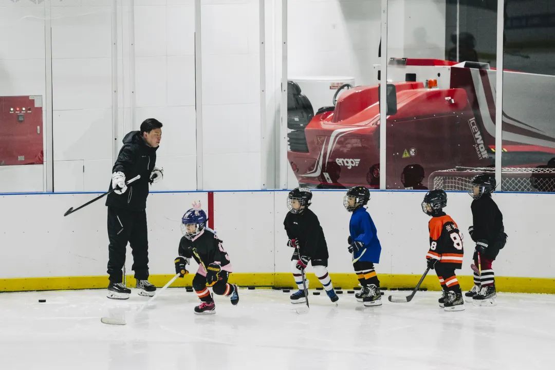 傍晚五点,正是普陀(国金)冰上运动中心一天中最繁忙的时段。进入寒假后,这片1800平方米的标准冰场变成了炙手可热的开心场地,学习基础滑冰、花样滑冰和冰球的学员络绎不绝。
