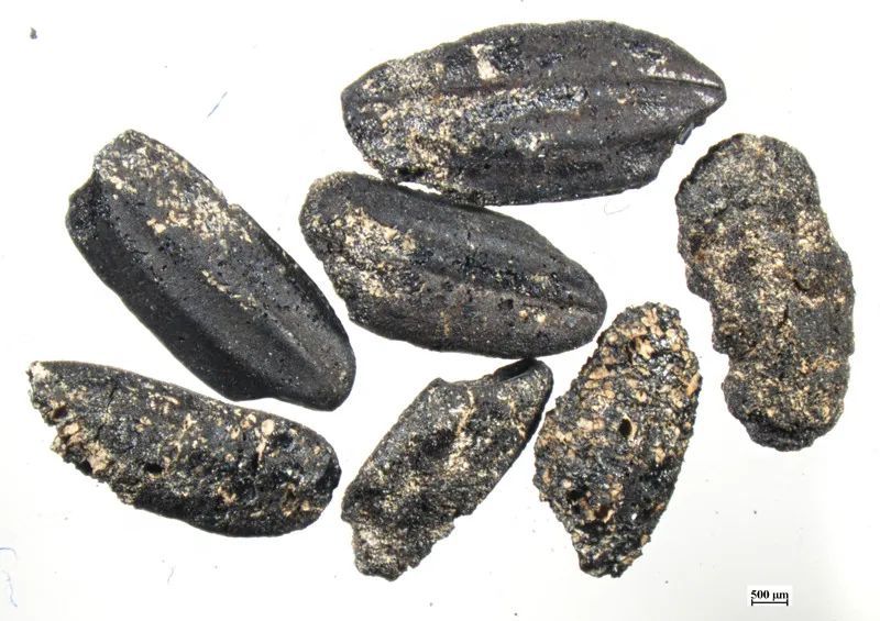 李家岗遗址灰坑中浮选出的炭化稻米。受访单位供图