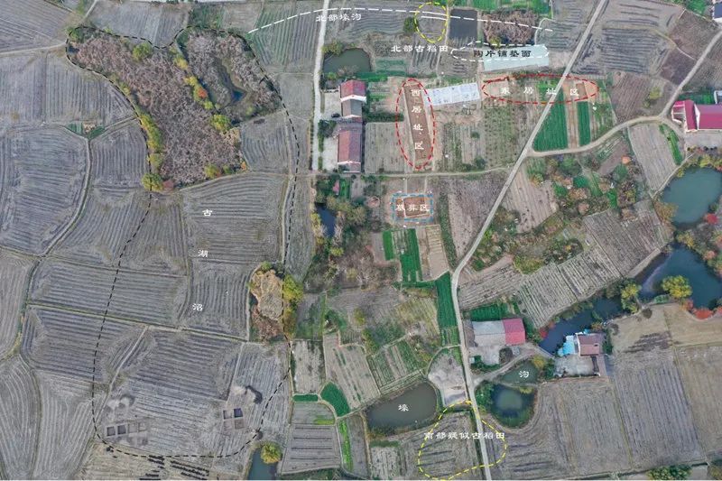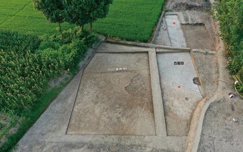 经过考古挖掘后,初步探明两处古稻田位于南、北壕沟附近,北部古稻田揭露面积较大,在北壕沟内、外两侧均有分布。考古人员在剖面及平面系统采集土样进行水稻植硅体浓度的检测分析,显示多数土样含量超过5000粒每克,部分达到10000粒每克以上,提供了植物考古的证据。