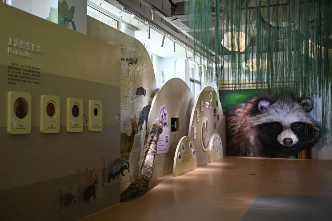 而在一旁的展板上,陈列着黄鼬、松鼠、刺猬、兔子的毛皮,吸引着市民纷纷上前触摸,体验这些小动物的真实触感。旁边还有一条长长的尾巴好像一条引导线,引领着大家来到“貉”的家园。这里通过展示貉的食谱、生活环境以及与貉容易撞脸的其他小动物,帮助人们分辨貉的生活习性和外貌特征。