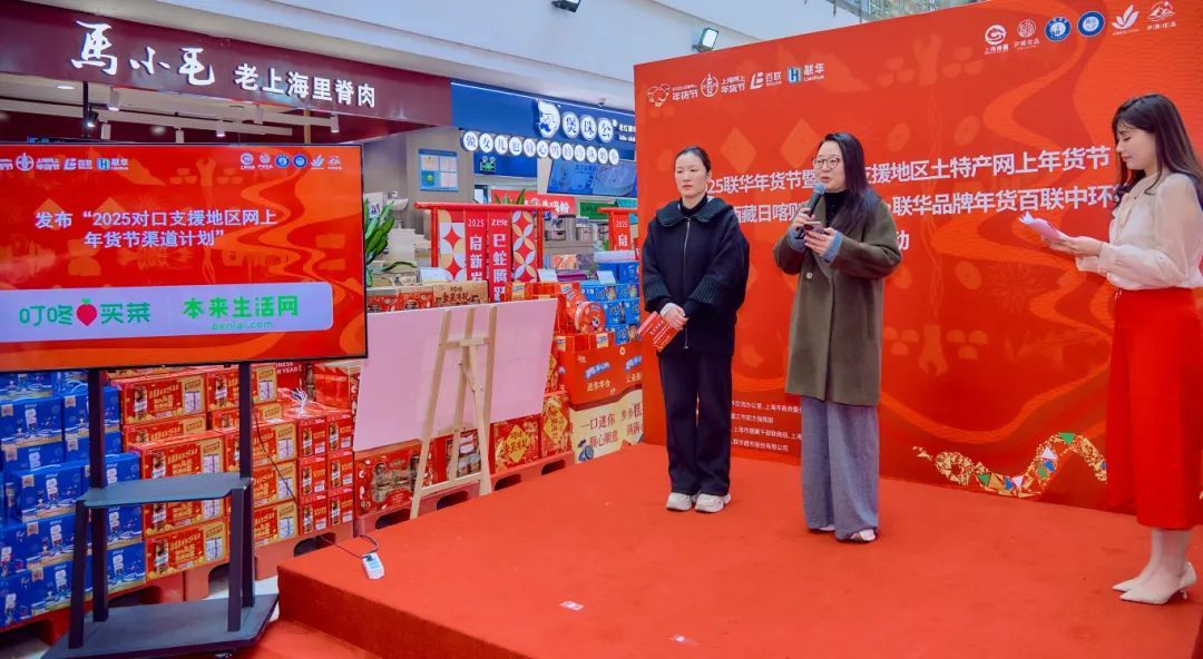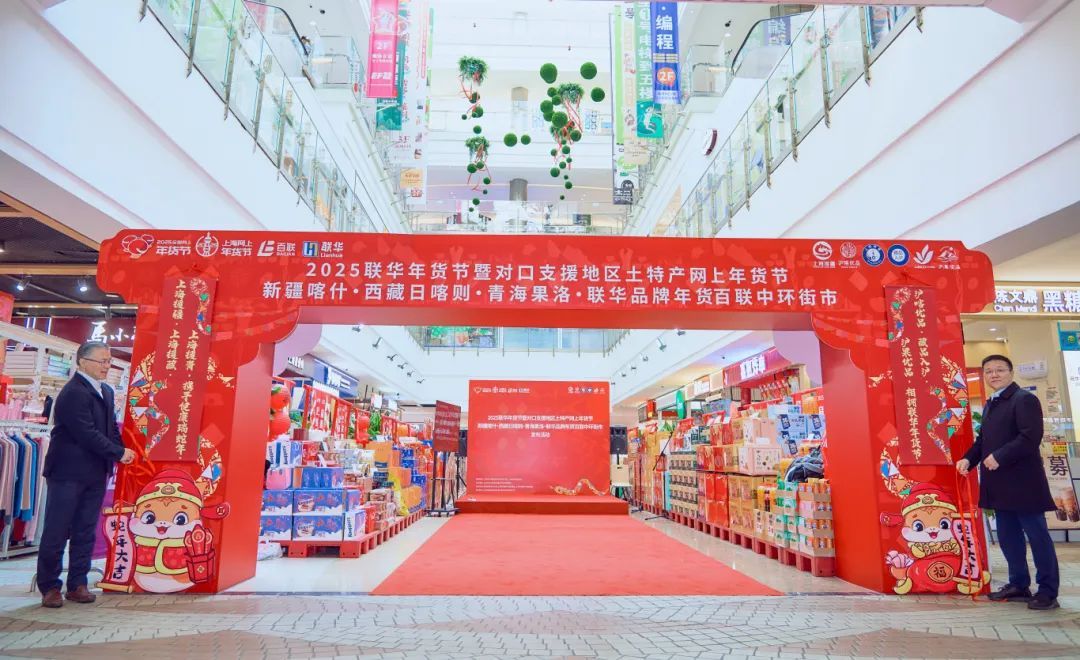 巳蛇腾跃启新岁,2025年蛇年春节正悄然向我们走来。1月21日上午,由上海援疆前方指挥部主办,邀请百联集团、上海援青干部联络组、上海援藏干部联络组支持,由上海消费帮扶联盟和联华共同承办的“2025联华年货节暨对口支援地区土特产网上年货节”于上海百联中环购物广场B1层中庭正式开启。此次对口支援地区土特产网上年货节,从1月14日(腊月十五)开始至2月5日(正月初八)结束。