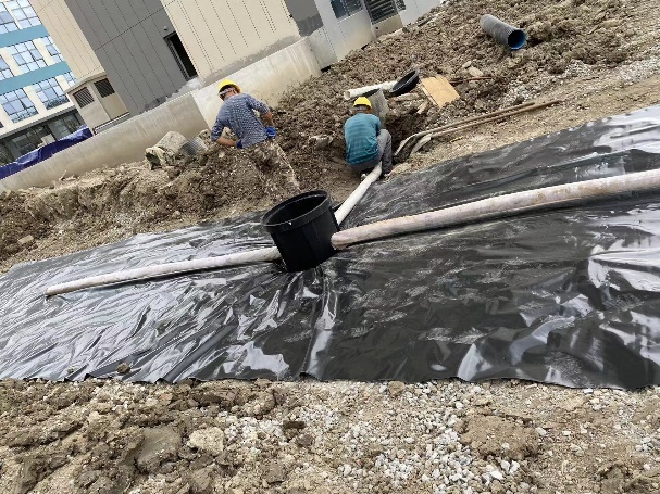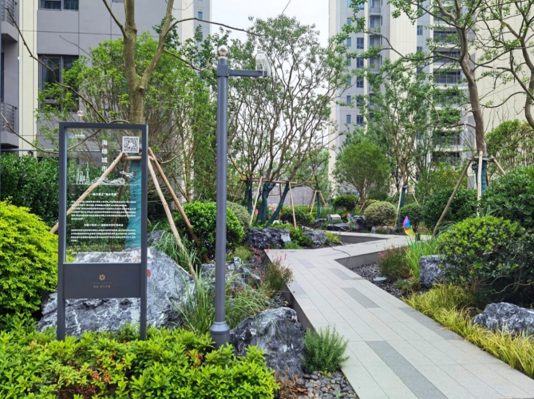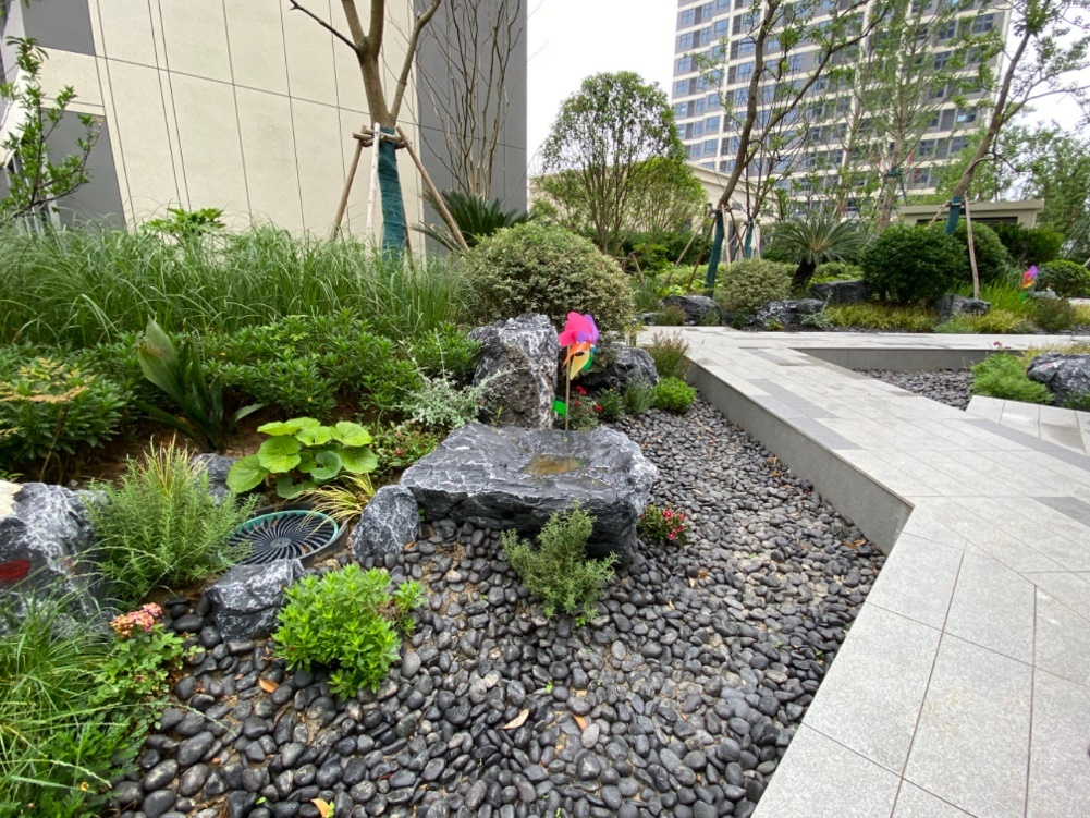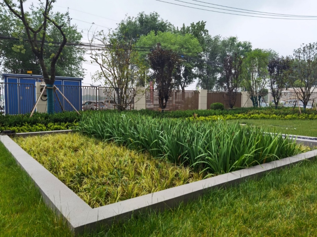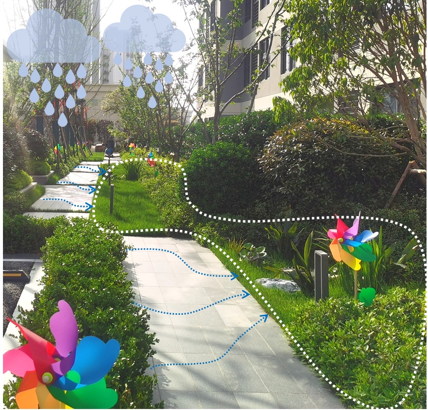 海绵城市总体设计 本项目在设计之初就优先考虑海绵城市设计理念,并将其融合在建筑、景观、给排水设计的全过程,在保证雨水控制与利用功能的同时,实现海绵城市元素与建筑美学的完美融合,使雨水设施成为景观的不可分割的一部分。全场地共计设置1015平方米透水沥青、1717平方米下凹绿地、66.9平方米雨水花园、250立方米雨水蓄水池、49平方米微生态滤床,年径流总量控制率可达到75%、年径流污染控制率可达53%。 雨水径流控制与排放路径图 海绵设施平面布局图 海绵城市设计亮点 亮点一:一幅画卷,轴心贯穿,三景共鸣 本项目将海绵设计理念充分融入景观节点,沿着南北脉络,绘出一轴三景的景观奇迹——阳光草坪、雨水花园、梦想田园,依序展开,自北而南,如诗如画。 ● 阳光草坪 位于项目轴心北侧的阳光草坪,一片逐级下沉、方正辽阔的绿毯铺陈开来,作为重要的雨水调蓄空间,四周台阶侧壁的“溢流井”便是海绵城市的点睛之笔。考虑传统海绵设施溢流雨水井景观效果较为突兀,经与景观、现场施工等单位多轮沟通,创新性采用侧壁开口的溢流设计,可最大化降低对景观整体效果影响,同时满足雨水溢流和安全排放功能。 阳光草坪建成效果实景图 ● 梦想田园 融合海绵理念与自然美,分列布设下沉空间,打造无边界诗意田园风貌,实现雨水的自然积存。利用中心砾石排水沟与海绵设施完成面的高差作为雨水调蓄空间,避免传统溢流雨水井对此处造成的视觉突兀影响。无论晴雨,都展示其独特生态美学,实现可持续与和谐共存。 梦想田园建成效果实景图 ● 雨水花园 雨水花园通过鹅卵石、黑山石与海绵植物的精细化搭配,营造出四重独特景观。首层下凹鹅卵石引导雨水自然调蓄、渗透、流动;二层黑山石营造宁静山石景观;三层矮灌木带来绿意与生机;顶层挺立的乌桕增添色彩。晴日为绿洲,雨天汇成溪,形成优美迷人的海绵景观花园。 雨水花园建成效果实景图 雨水花园现场施工图 亮点二:宅间下凹式绿地,串联生态雨水空间 宅间开敞草皮空间设有下凹式绿地,通过微地形竖向设计,承纳周边道路场地雨水径流,以流动串联的生态雨水调蓄设施为纽带,将楼宇间的绿意满园与生态盎然连接成一幅和谐画卷。 下凹式绿地建成效果实景图 下凹式绿地现场施工图 亮点三:科普启智,共绘生态画卷 雨落花园,绿意盎然,在这里雨水不再是匆匆过客,而是滋养万物的甘露,是自然循环的见证,是生态平衡的守护者。 ● 微生态滤床净化 小小的一片空间,是雨水净化的重要场所。本项目西南角设有1处有效调蓄容积为250立方米的雨水蓄水池,位于地块雨水管网末端,兼顾雨水调蓄与回用功能。雨水净化系统采用微生态滤床工艺,经处理后的雨水回用于场地绿化浇灌和道路冲洗。微生态滤床由种植土层、沙砾层、渗透层、滤料层等组成,通过模拟自然生态系统中的净化过程,利用生物、物理和化学等多种作用去除雨水中的污染物。 微生态滤床建成效果实景图 微生态滤床现场施工图 ● 雨水花园模型 儿童活动场地旁侧设有雨水花园模型,展示了其典型断面做法,自上而下分为蓄水层、土壤层、粗砂层和砾石层,为小区居民展示了雨水花园生态净化的全过程。 雨水花园模型实景图 – END – 往期精选