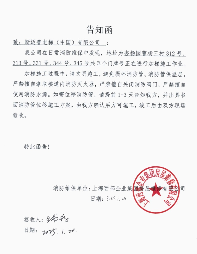 近年来,老旧住房加梯的需求日渐增大,同时也带来了隐患苗头。为了加装电梯,原有的消防管道需要移位。有的加梯施工单位移位消防管道后未采取保暖措施,有的采用焊接和快接等不规范方式连接消防管道,有的擅自切断消防管道。为了遏制这一势头,西部集团安委办会同维修公司,连出四招、招招见效。