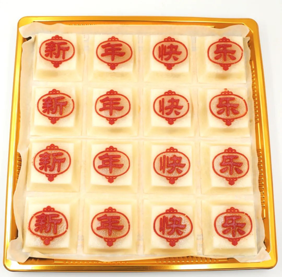 走进方糕店,印有“新年快乐”“蛇年运转”等字样的方糕映入眼帘,传递着新春气息。