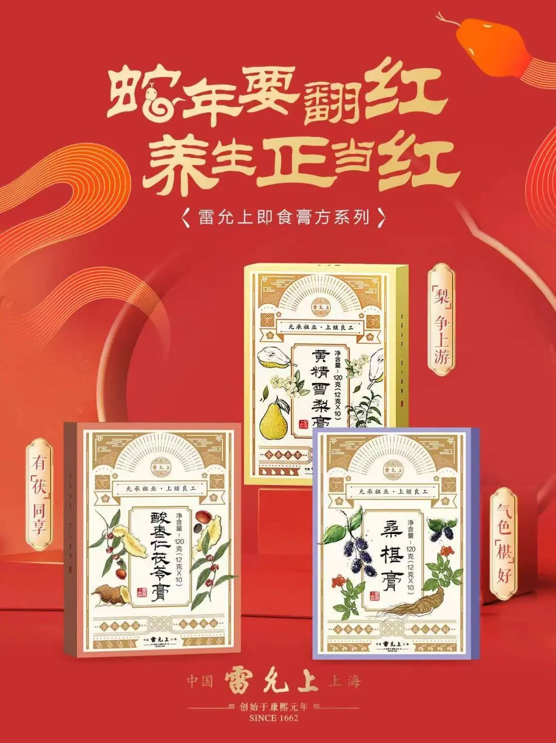 在推出滋补类产品促销活动的同时,黄精雪梨膏、酸枣仁茯苓膏、桑椹膏等三款雷允上西区经典即食膏方也焕新上市。