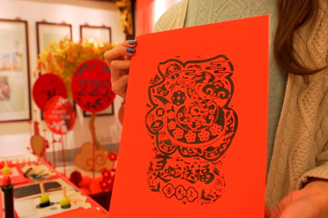 消费者任意消费后,关注“上雷”小红书并点赞、关注指定笔记,就可以在“灵蛇送福”和“金蛇招财”两款新春门贴中任选一款,DIY拓印后带回家。