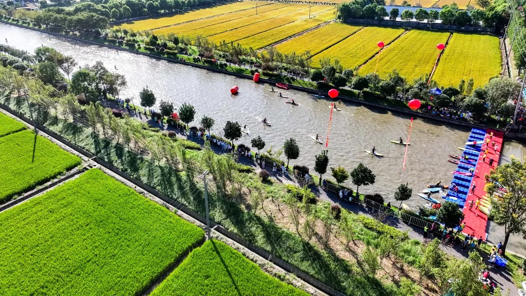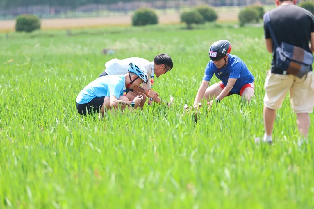 赛事地点的万亩良田,由9300亩粮食种植区、660亩水产养殖区和400亩标准化蔬菜种植区构成。选手们在1公里桨板、22.5公里骑行和5.5公里跑步的赛道上,穿梭于稻田与河道之间,既挑战体能,也体验了自然生态与现代农业的完美融合。