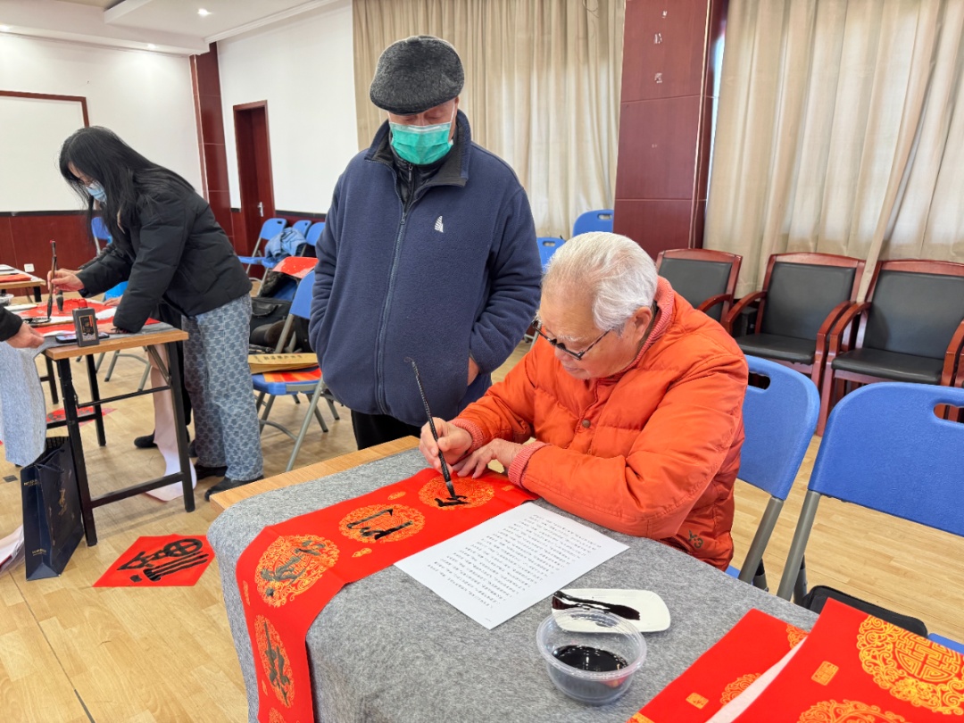 “龙腾九域千年禧,蛇舞三春万象新”“春雨丝丝润万物,红梅点点绣千山”……活动中,老师们铺开红幅,挥毫泼墨,精美的春联和“福”字在笔下诞生。“这样的活动已经成为每年都会有的‘节目’了,排入了我们自己的日程计划当中。每次看到大家高兴地拿着我们写的春联回家,我们感到很开心,这也让我们的一技之长得以发挥。”朱晓东表示。