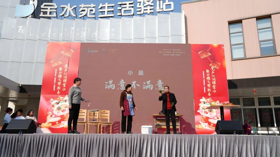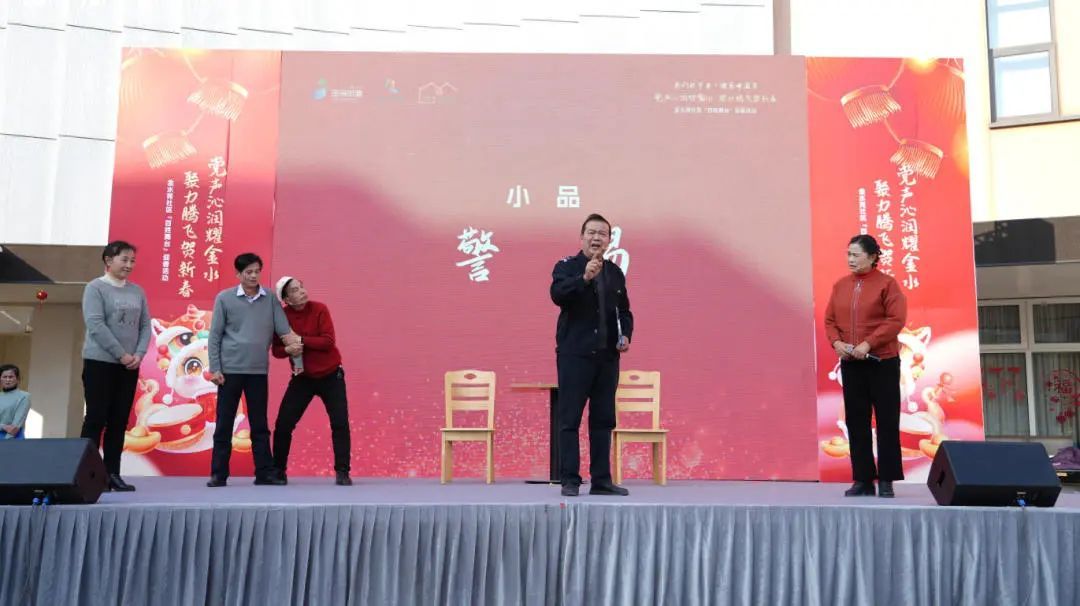 随着春节的临近,为了让社区居民感受到温馨快乐的节日氛围,促进邻里之间的交流与互动,近日,金海街道金水苑社区举办了一场与百姓共创的“我们的节日·欢乐中国年”迎春活动,展示社区文化特色和居民风采,让居民们在家门口就能享受到节日的快乐。 广场上舞龙腰鼓热闹开场。百姓舞台的演出已成为社区闹新春必不可少的部分,这些表演都是由居民自发自编自排自演,连舞台主持人也都是小区居民。 舞台上,有平均年龄超过70岁阿姨的广场舞,有亲子家庭的温馨合唱,也有小朋友的诗朗诵等,展现了社区居民的别样风采;舞台下,居民们看得直呼“过瘾”,时不时就能听到喝彩与欢呼。举办百姓舞台就是要“把舞台让给群众、把话筒递给群众、把镜头对准群众、把屏幕留给群众”。 在百姓集市,映入眼帘的是一面大型红包墙,墙上挂满了特制红包,居民可以摘取红包,红包内含有祝福语、小礼品兑换券等惊喜福利。 居民们在打卡合影点沉浸式拍照体验,留下最美记忆,共赏欢聚之乐。 小丑穿梭在人群中,一边用滑稽的表演与大小朋友们进行幽默的互动,一边为小朋友们制作造型各异的气球玩具,为迎新活动增添了无限欢乐。 广场上设置互动游戏,有投壶、套圈、下棋盘等,现场人气爆棚,加油声、鼓劲声此起彼伏。 居民们自主摆摊,带来了家中闲置物品和手工艺品等进行售卖或交换,感受邻里之间浓浓的温情。 剪纸、书法、古法漆扇等展示文化特色的摊位吸引着居民群众前来挑选,让居民带走满满的福气。 糖画摊位是最受小朋友喜欢的,一直排着长长的队伍,等着糖画师傅画出一个个栩栩如生的造型,好看又好吃,让大人小朋友都意犹未尽。 奉贤区中心医院和韦峰口腔的医疗志愿者们为居民群众提供义诊、医疗咨询等服务,不仅让居民们在家门口就能享受到专业的医疗服务,还提高了他们的健康意识和自我保健能力。 此次活动联合金海街道平安办、安监工作人员发放消防安全、国家安全、反电信诈骗、反恐、扫黑除恶、反邪教、禁毒、普法宣传等,增强居民群众的自我防范意识,为社区居民的安全保驾护航。 迎春活动结束后,金水苑新兴领域带头人“味多多食品店”店主还为小区内的保安、保洁免费发放糕点。