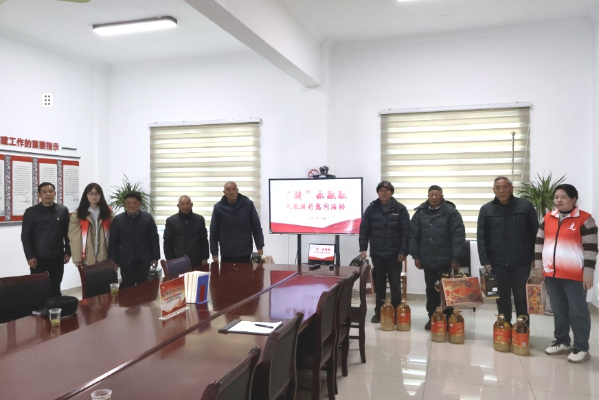 在廊下镇,志愿服务队与镇团委代表带着精挑细选的慰问礼包,一路骑行至山塘村,并将慰问礼包传递到每位慰问人员手中,关切询问他们的生活近况、子女就业等,送去 “凤凰” 的深情关怀。