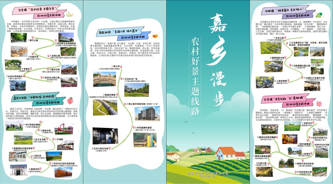 烟火藏诗意,诗意在乡间。比起城市City Walk,在村野之间自由自在地漫步,成为时下越来越多人的出行选择。嘉定区持续开展农村精神文明建设工作,大力培育和践行社会主义核心价值观,围绕“爱我‘嘉乡’”这一主题,9个涉农镇联合推出嘉定区“嘉乡漫步”农村好景主题线路,邀您走进嘉乡美景、感受诗画生活,沉浸式感受乡村自带的治愈力。