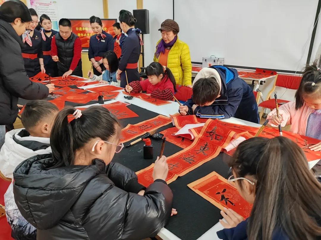 乘务员们还将刚刚书写好的“福”字送给在场的长者们。“阿姨,新年快乐!送您一张‘福’字,祝您新年福气满满!”长者们从乘务员们手中接过一张张“福”字和春联,喜笑颜开。