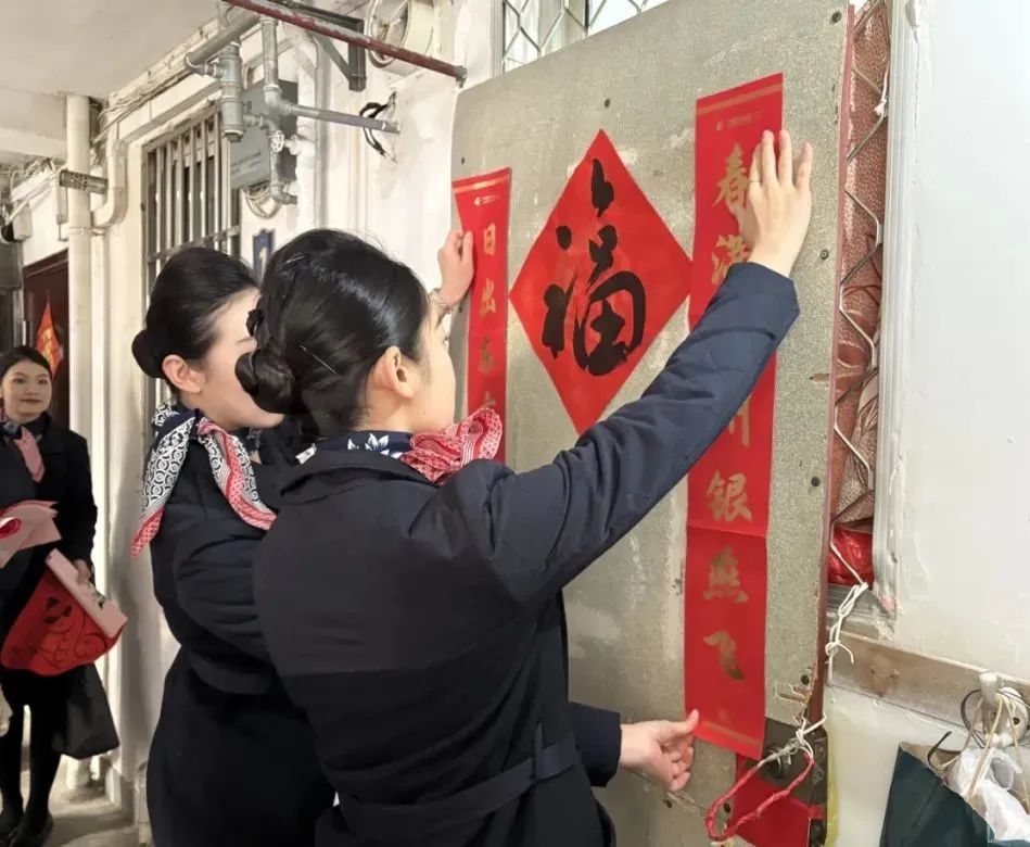 随后,乘务员们还拜访了宝北居民区的独居老人,亲手为老人贴上春联和“福”字。“奶奶,祝您新年快乐、身体健康、万事如意!”乘务员们亲切的问候令老人舒展笑颜。“很开心能通过我们的参与,让社区里的老人多感受一份温暖,也为新年增添喜气。”乘务员们表示。