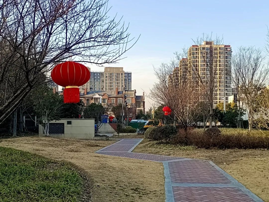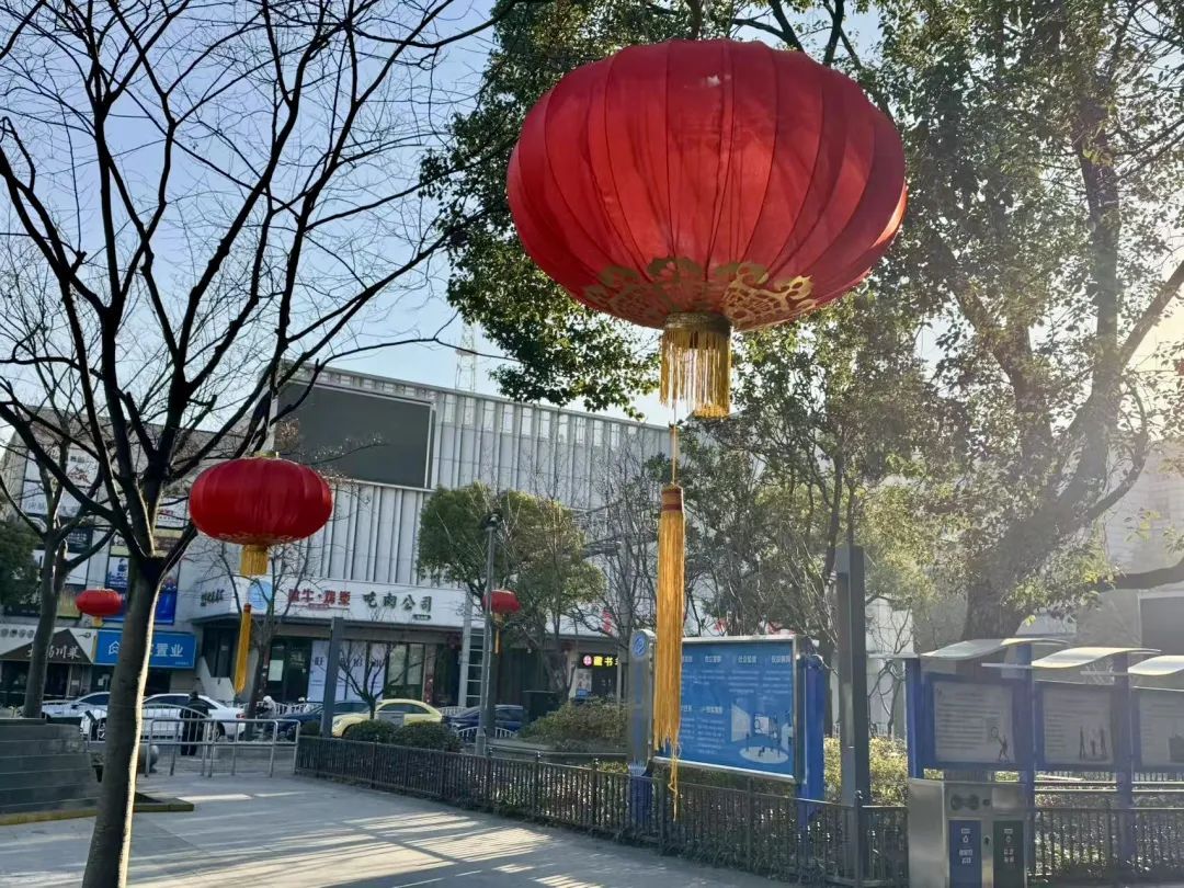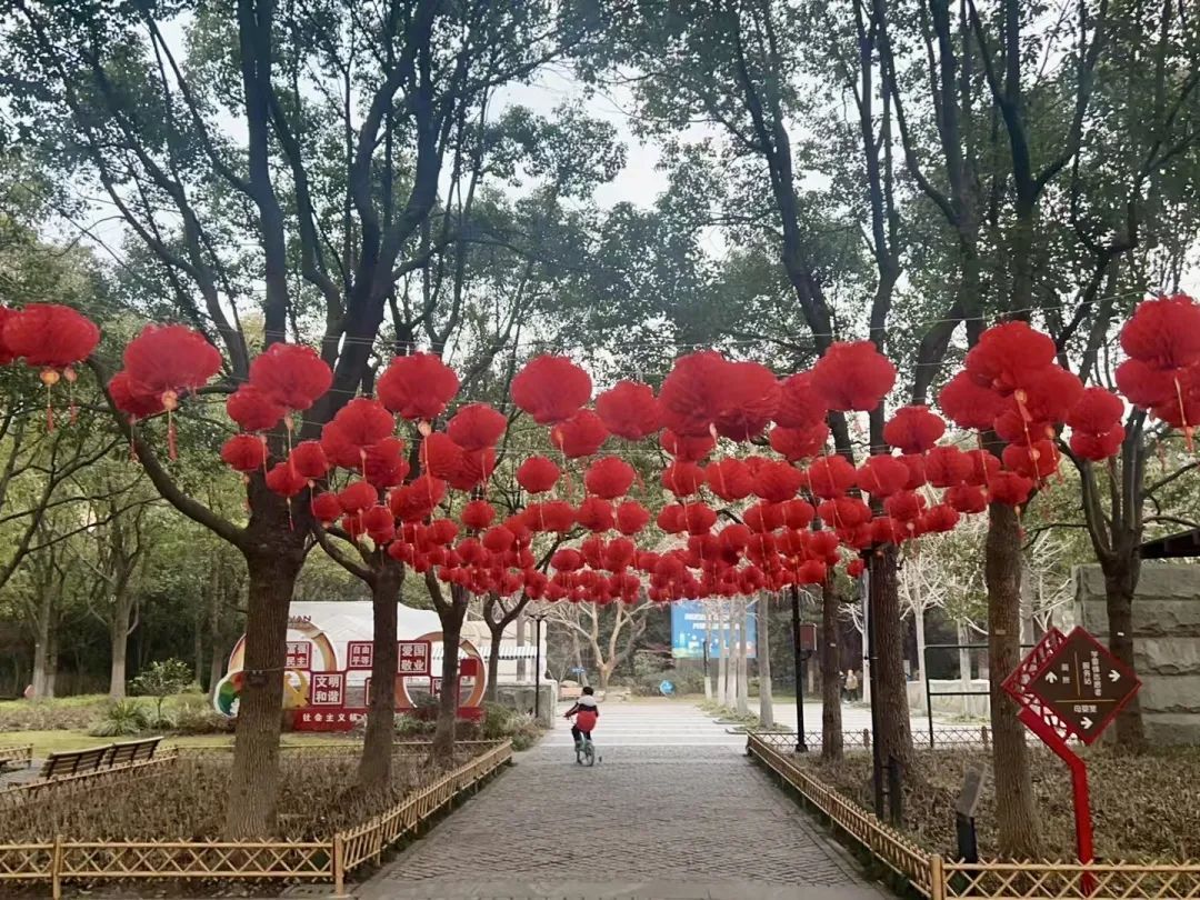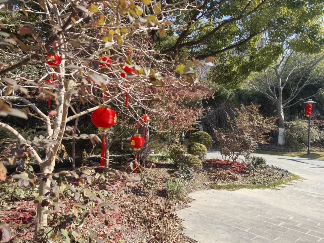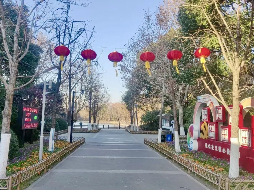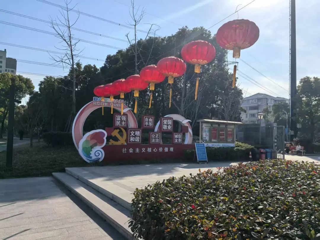 宝山公园、街头张灯结彩