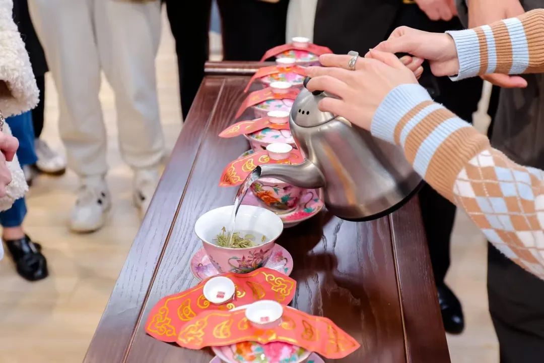 “送元宝咯!鸿运当头、开盖见宝……” 1月23日下午,在首发仪式所在地静安区旅游服务中心,来自近10个国家的外国友人在老上海茶馆创始人,静安“元宝茶”非遗传承人张荐茗的讲述下,互动体验了静安民俗非遗元宝茶喜庆的气氛。元宝茶历史渊源深厚。诗人陆游在宋朝就写下了诗句:寒泉自换菖蒲水,活火闲煎橄榄茶。“橄榄茶”即元宝茶,这其中的橄榄就是从福建运至上海青龙港,转运江南地区的。上海就成为元宝茶物质和文化的交汇点,也成为孕育、发展元宝茶的中心点。