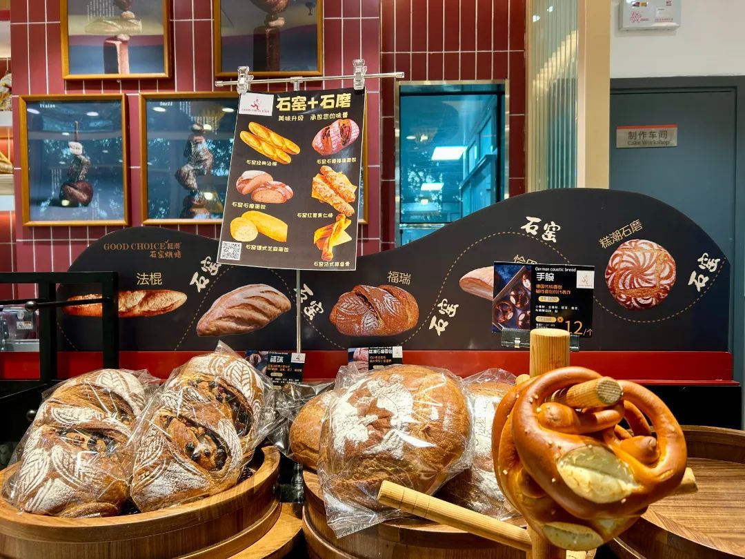 店内最大的特色就是耗资大几十万元的石窑烤炉,从德国定制而来。店内约80%的面包都是通过它烤制而成的,这种传统工艺能够充分锁住面团的水分,使得烤出来的面包外皮酥脆,内部组织却湿润柔软。这也是GOOD CHOICE面包健康、好吃的秘诀所在。