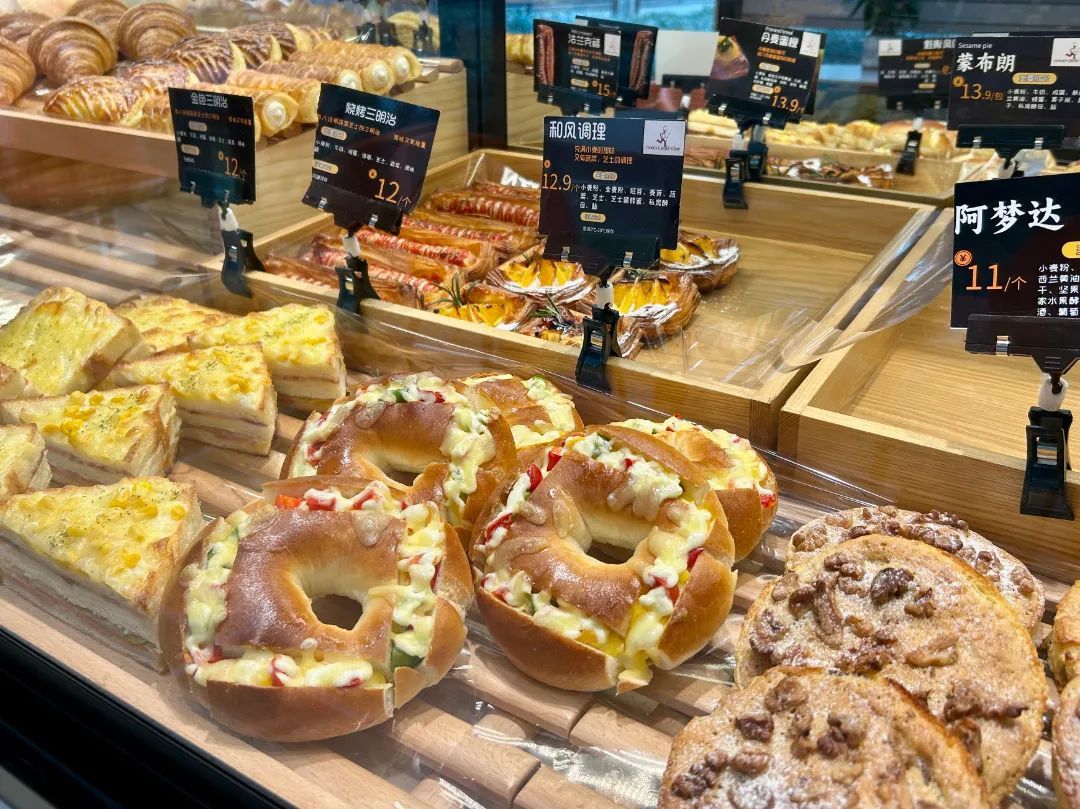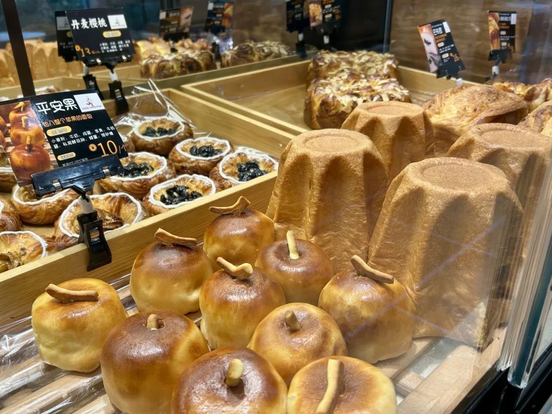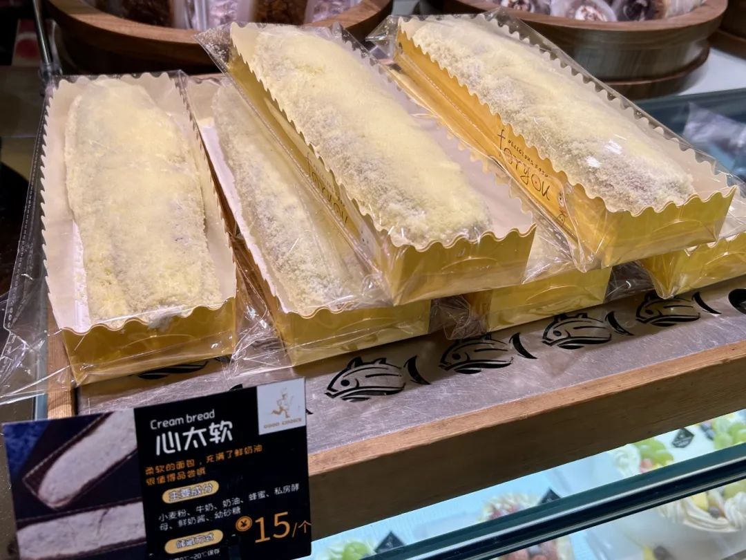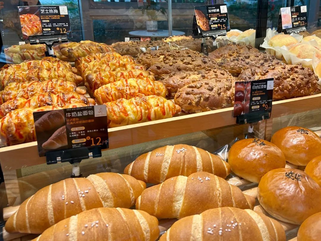 在这里,琳琅满目的面包能满足不同人群的需要。有口味丰富的日式调理面包,经过改良,香气浓郁、口感松软,更符合中国人的喜好;有德式石磨面包,最大程度保留麦香原味,低糖低脂、满满能量,适合运动健身和中老年人群;也有不少甜品和蛋糕,给你偶尔“放纵”一下的甜蜜。