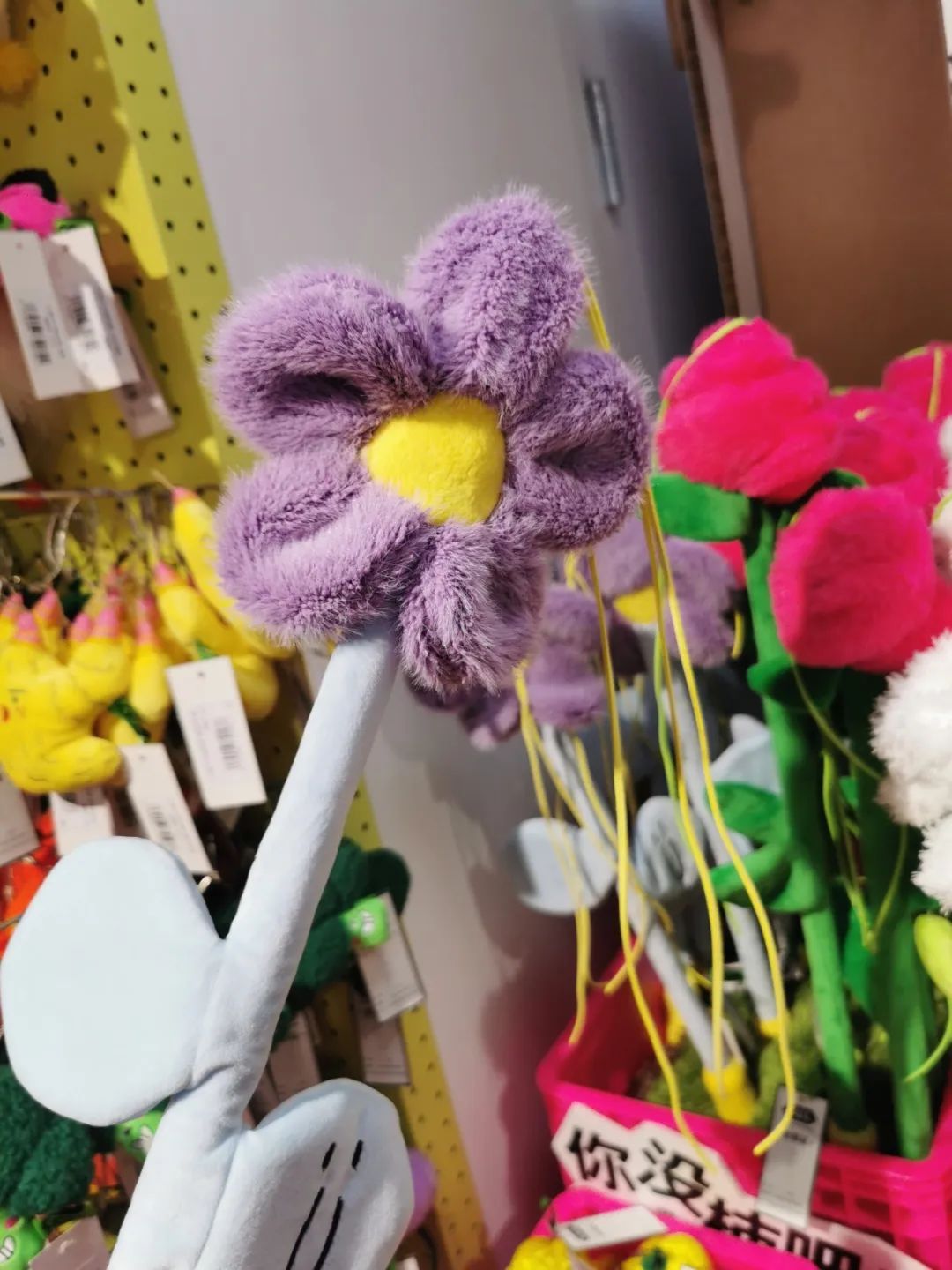 玩出“花”的逗猫棒、零食样式的发声玩具、时尚感超强的胸背肩带、柔软舒适的猫窝狗垫、鞭炮美钞卷样式的可分解宠物拾便袋……店内各类宠物用品应有尽有。