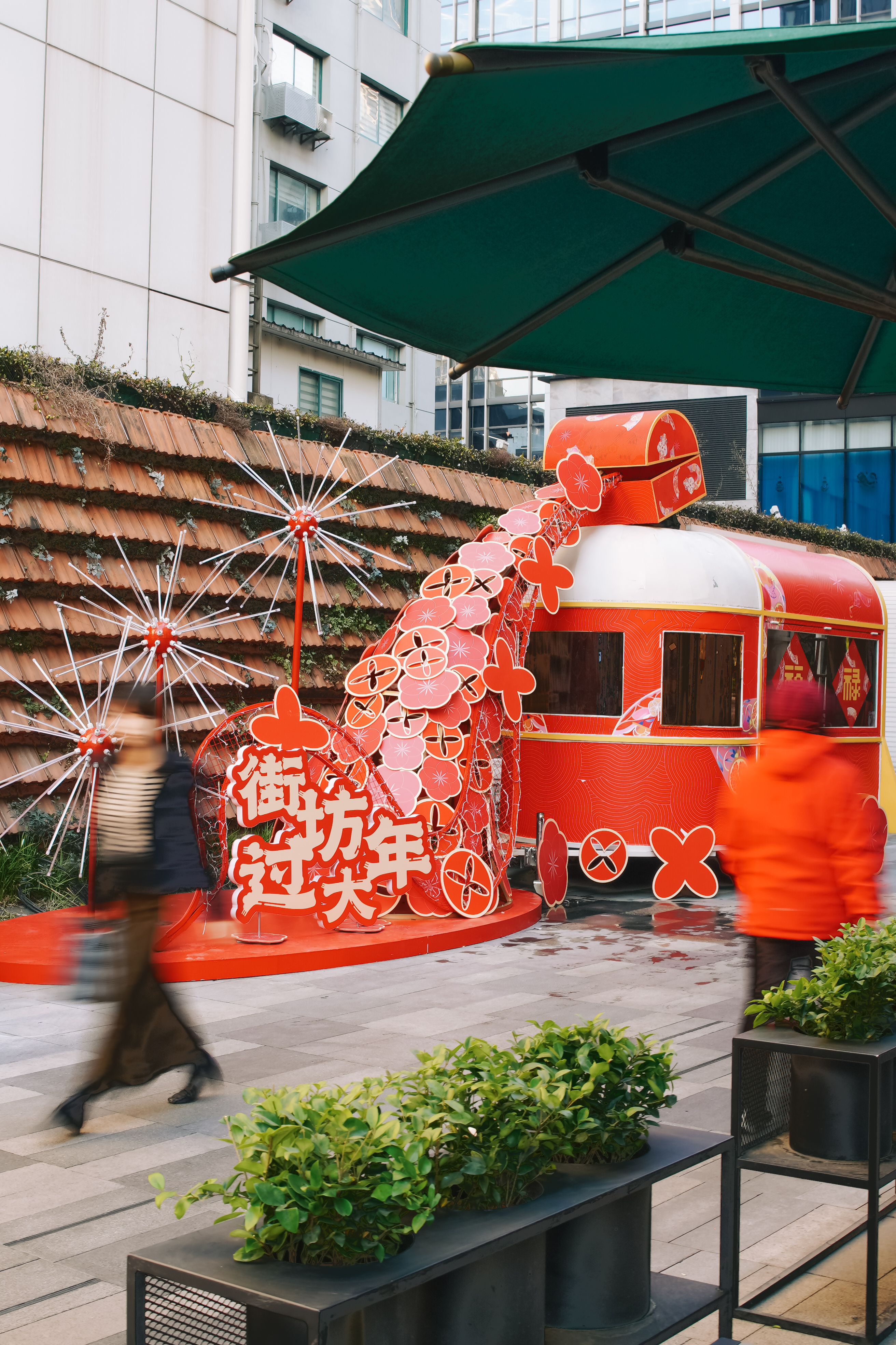 走进新会路上的鸿寿坊,就可以看到红红火火的迎新花车打卡点,将烟花、钱币、花卉元素与蛇年结合起来的打卡装置,包含满满的新春祝福,充满氛围感。商场内的树木也点缀上了红金相间的帷幔和装饰,随风飘动的时候光芒闪耀。春节期间,鸿寿坊内还将开展“蛇我其谁”系列弄堂游戏,用跳房子、象棋挑战、猜谜语、弹珠迷宫等一系列轻松有趣的社区互动游戏,唤起市民记忆里的海派年味。