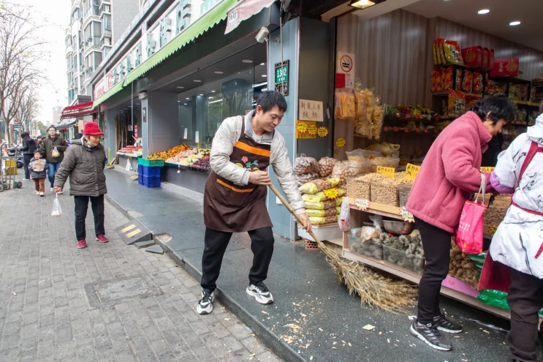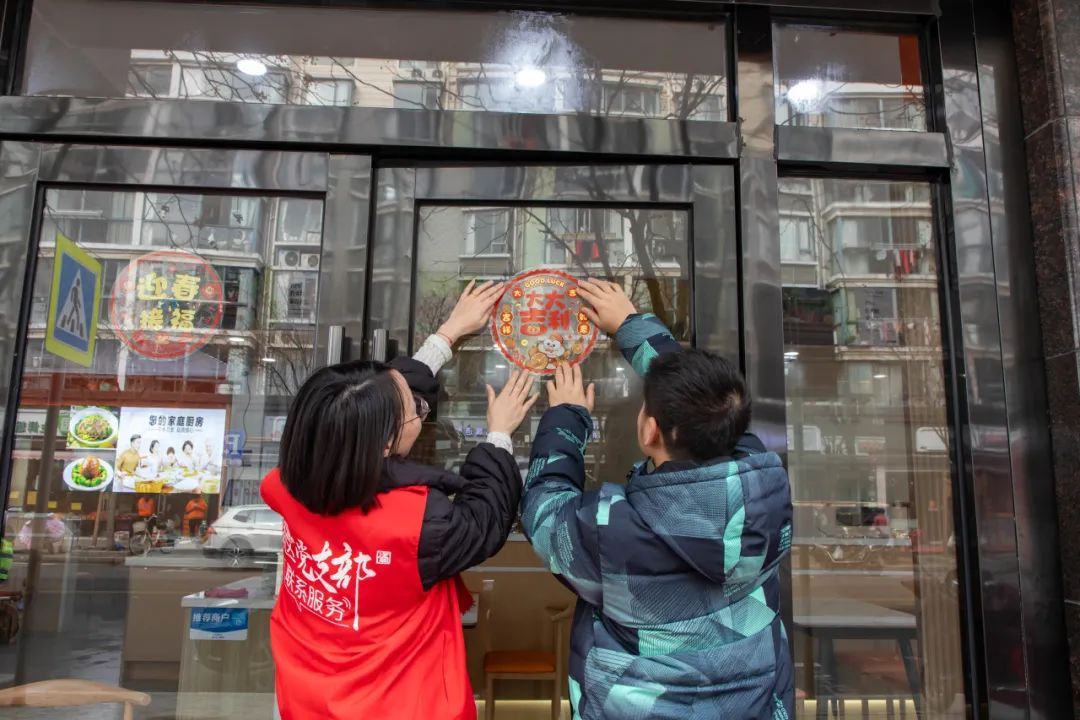 除了清洁行动,红彤彤的新年窗花“飘”进了沿街店铺的橱窗上,除了喜庆的“福”字,“招财进宝”“吉祥如意”“年年有余”等吉利话也为门店的玻璃增加了新春喜气洋洋的色彩。志愿者和店铺商家一起把窗花贴起来,心与心的距离也贴得更近。