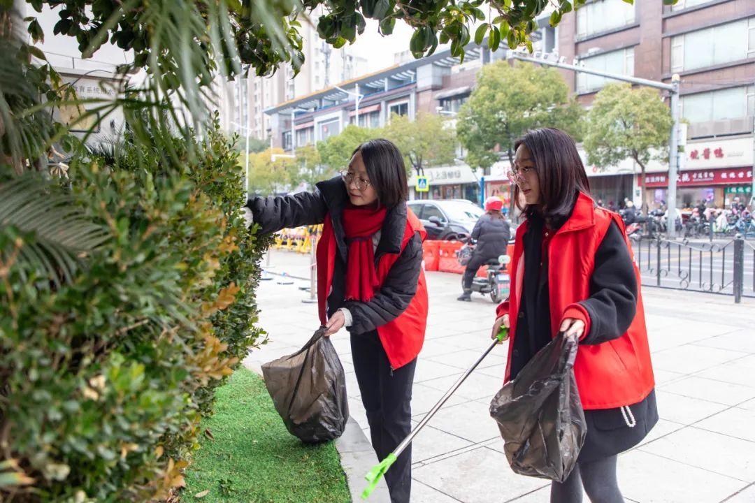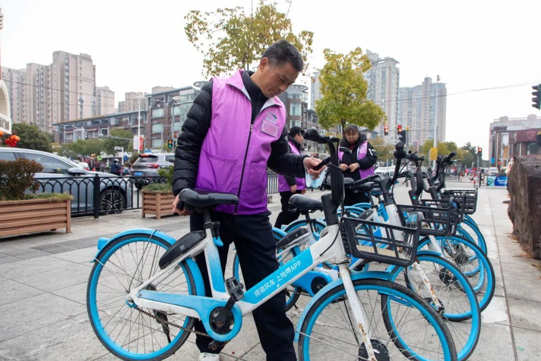 志愿者们迅速明确分工和包干区,沿着主干道有条不紊地开展清洁行动,手拿卫生夹细细搜寻捡拾垃圾,熟练地夹起烟头、塑料袋、纸巾团……此外,还不忘将共享单车在指定区域内排放整齐,街面整洁度大大提升!