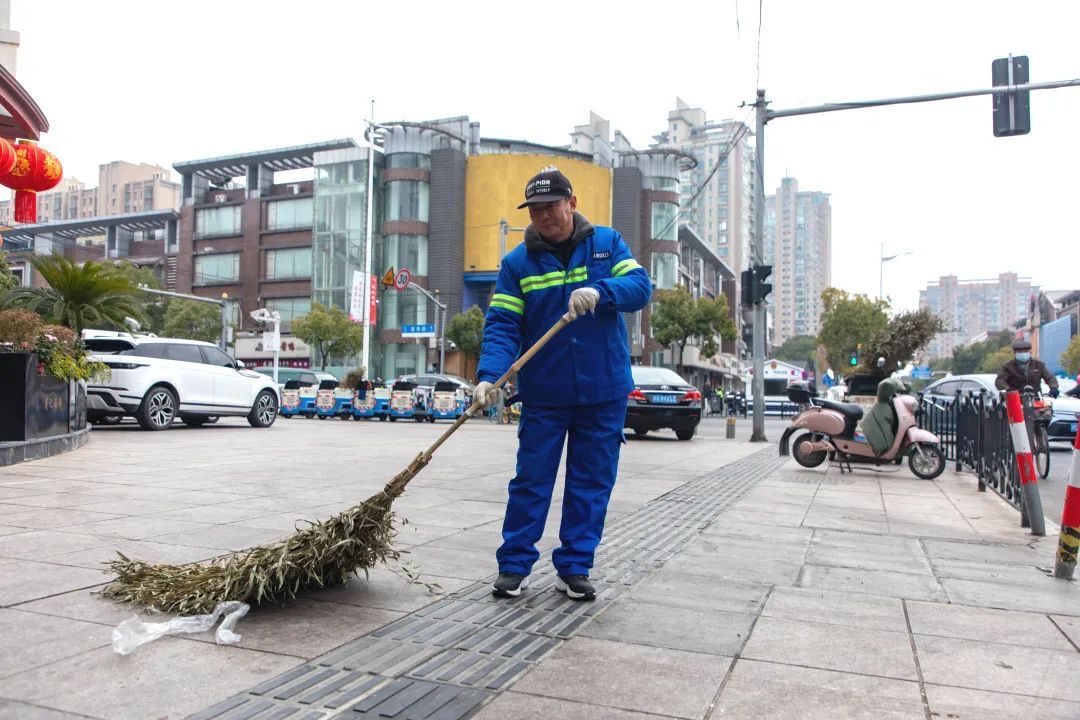 红马甲、紫马甲、蓝制服穿梭在育秀路和通阳路,地面、外立面、门面、绿化带……一个卫生死角都不放过,统统来一次深度清洁,全员参与干得热火朝天!