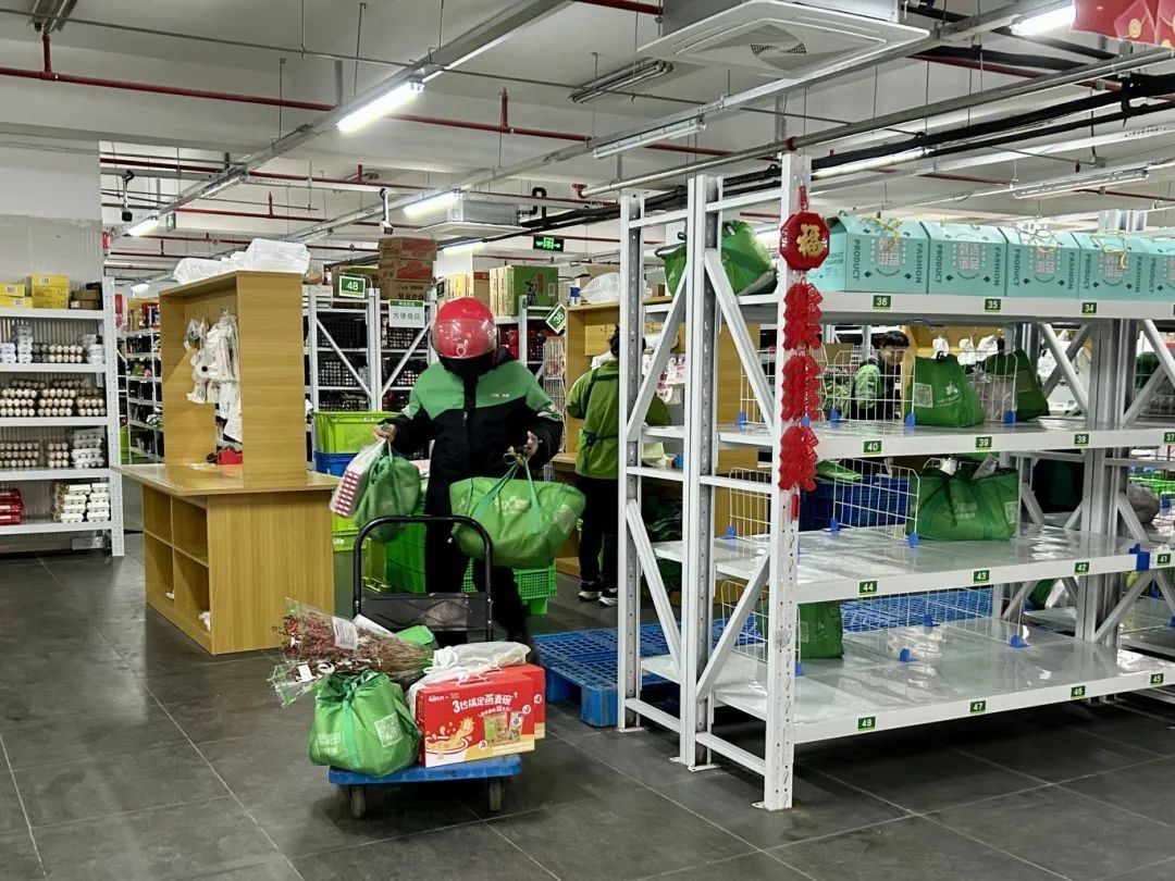 在运力保障方面,叮咚买菜提前做足准备。申霞路站点在原有20名员工的基础上,另外招募了7名兼职人员,以确保春节期间运力正常。此外,公司还为在岗员工提供春节留守福利、补贴和错峰假期等一系列激励措施。仓管员柴君芳表示,由于公司福利吸引人,她选择留守,“能比往年多赚3000多元,所以我很乐意留下来。”