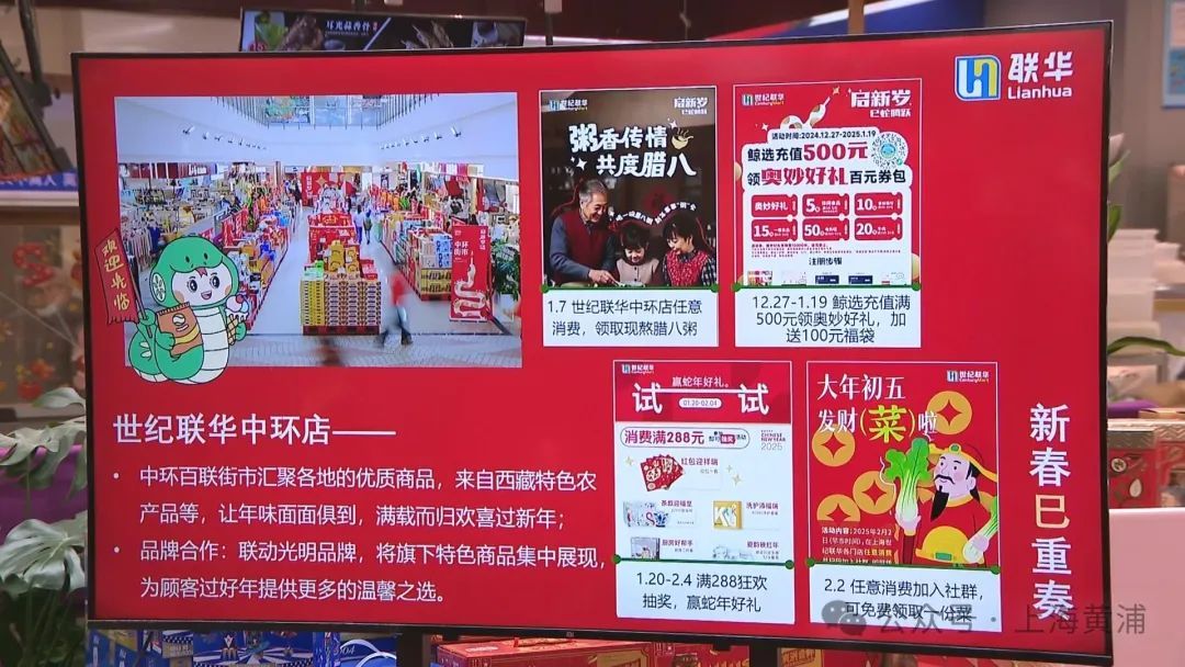 这次年货节,全市各联华超市门店围绕“寻年味、备年货、送年礼、闹元宵”四大主题,推出了1200多款特价和每日爆款商品,给消费者带来最具性价比的选择。各线下门店还通过各种促销活动,联动线上线下,吸引消费者到店消费,力求把年味拉满,点燃消费热情。而新疆、西藏和青海好物集聚沪上,与联华联动,让消费者在购买年货的同时,感受浓浓的年味与家的温暖。