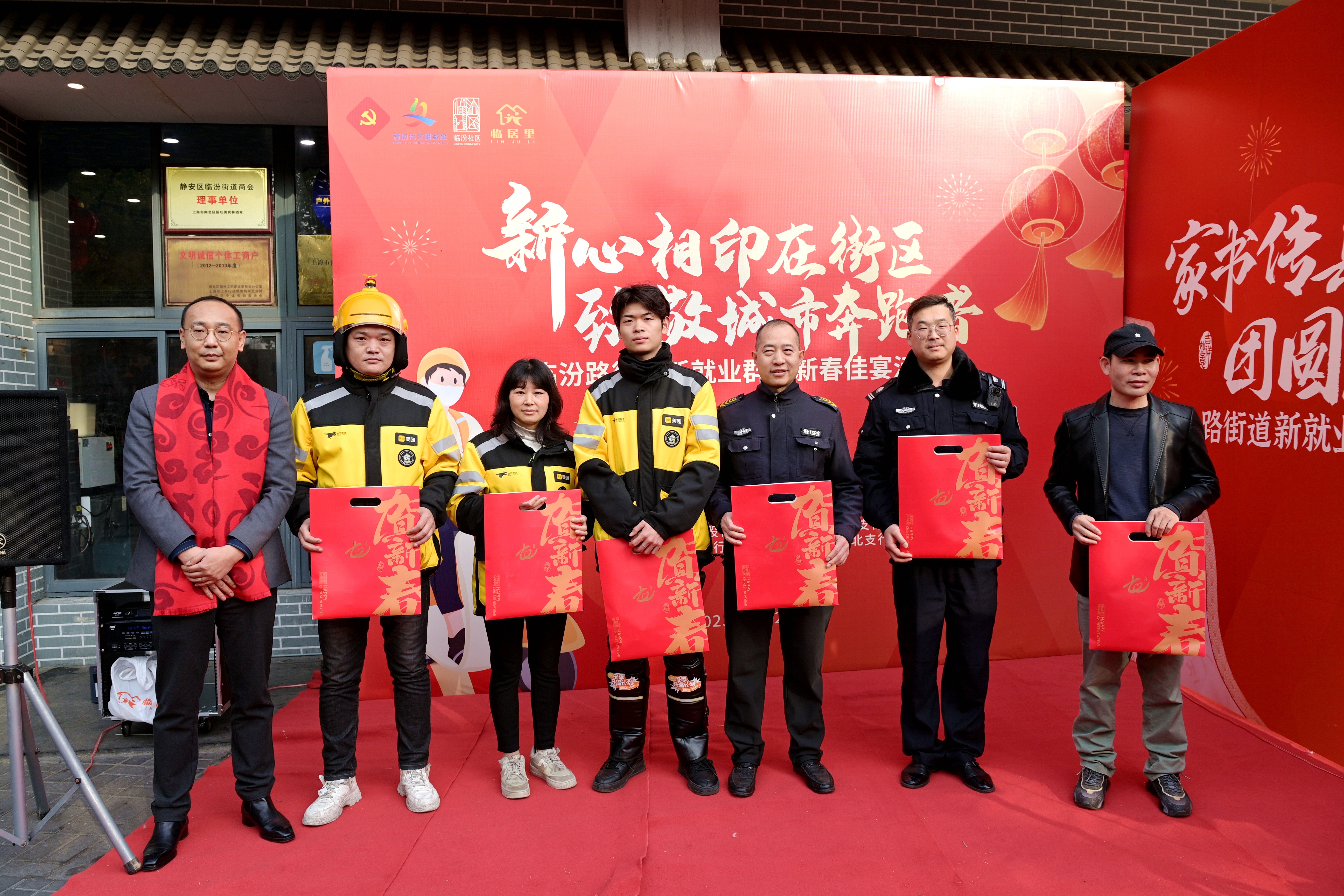 过去的一年,临汾路街道依托覆盖辖区的17个新心驿站,通过分布式、贴近式的服务模式,精准对接新就业群体在工作、生活等各方面的需求。同时充分发动以“临汾好人”“中国好人”为代表的社区商家,共同参与到为新就业群体提供贴心服务的行动中来。本次新春佳宴的举办地新旺美食林的店主俞迎春,长期扎根临汾并担任沿街“路段长”,积极投身社区公益,为新就业群体提供用餐、停车、休憩等各类服务,2024年获“中国好人”称号。
