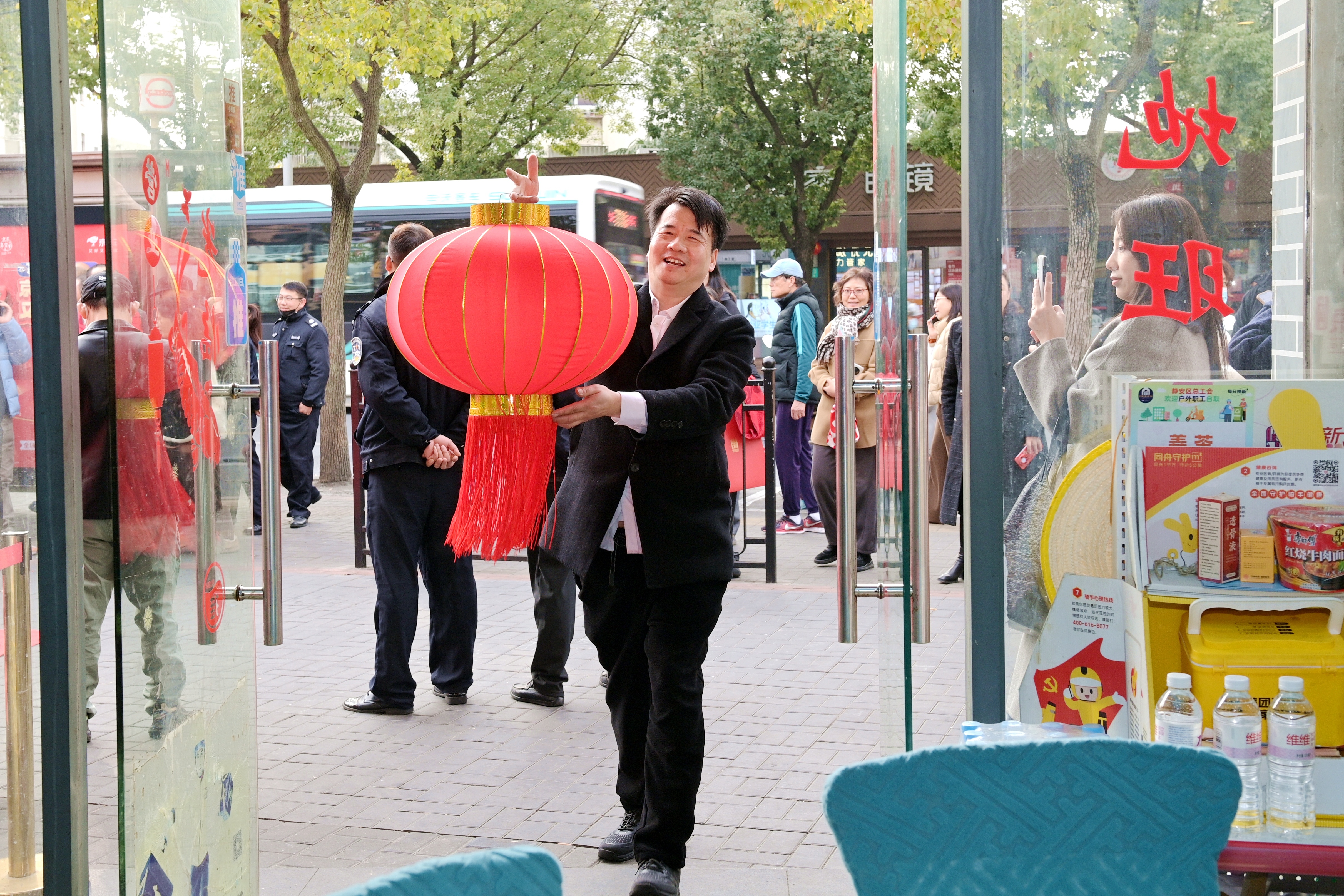 用餐现场其乐融融,在一片欢声笑语中,区域化党建共建单位中国工商银行股份有限公司上海市彭浦支行、浙江泰隆商业银行股份有限公司上海闸北支行行长也为新就业群体代表送上新春祝福,他们手捧装满祝福的红色福袋,依次送到大家手上。福袋里有春联、福字和实用的生活用品,饱含着对大家的关怀,收到福袋的新就业群体们满心欢喜,连声道谢,现场满是温馨。