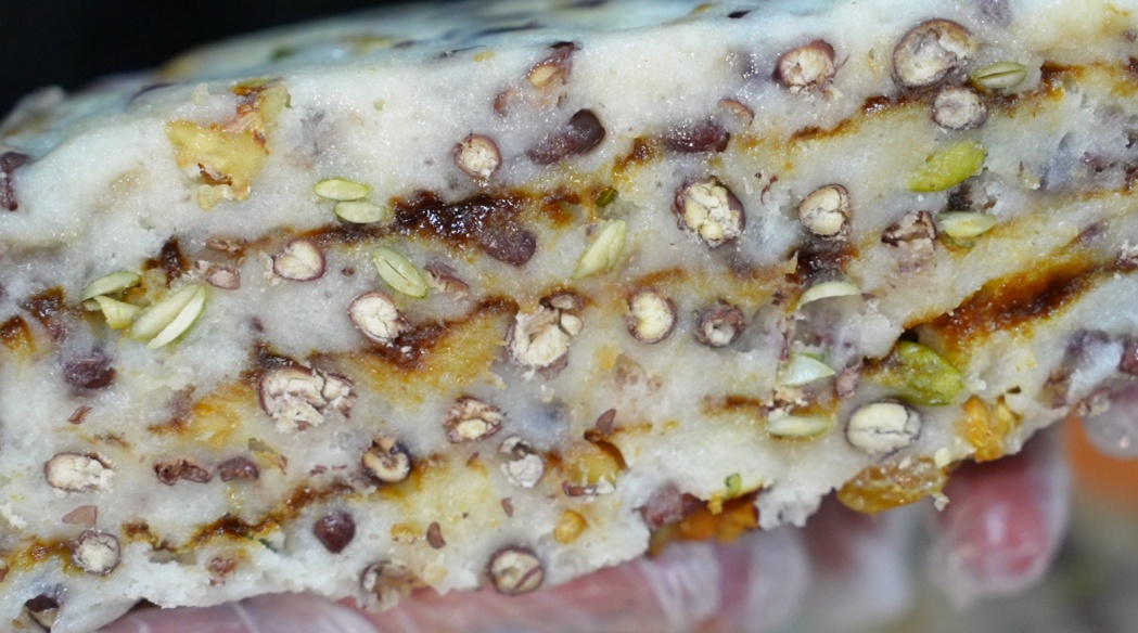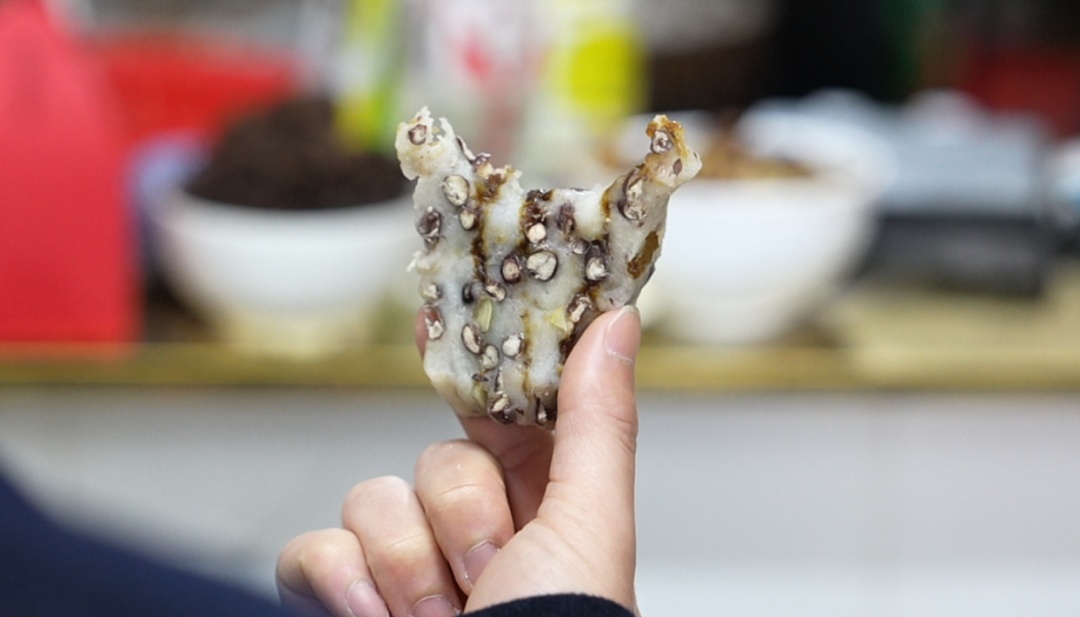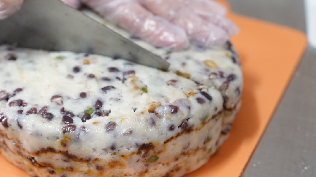 这一口,糯叽叽,甜咪咪,加上瓜子、核桃、赤豆,口感丰富,是沈静口中外婆做出来的味道,也是我们童年的味道。
