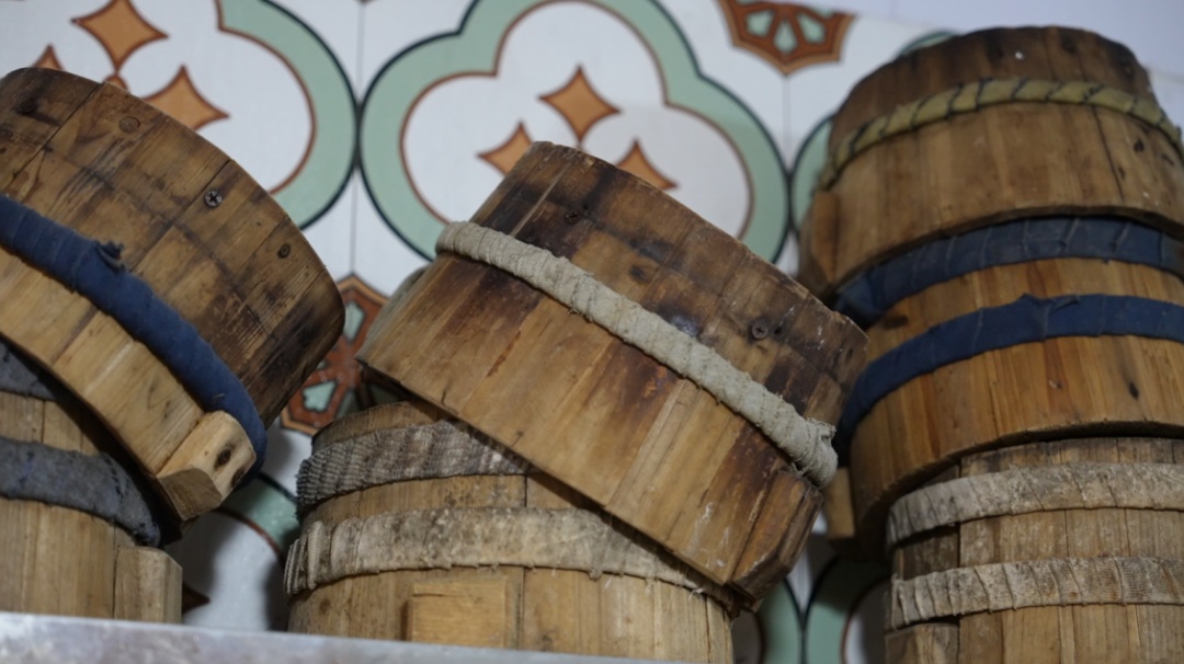 颛桥桶蒸糕是放在特别的杉木桶里蒸的,这也是沈静家里的“传家宝”。沈静告诉记者,这些桶是老物件了,是她外婆在新中国成立之前买的,现在传到她的手上。现在闻起来,还能闻到一股清新的杉木香味。