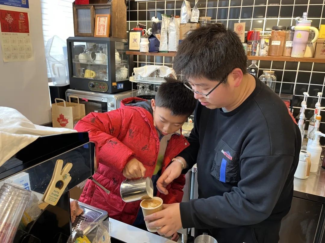 活动现场特别设置了咖啡拉花体验环节。在专业咖啡师的指导下,新就业群体的孩子们用心学习拉花技艺,一杯杯精美的咖啡在手中诞生。不仅是一次创意体验,更是一场关于美好与艺术的心灵碰撞。