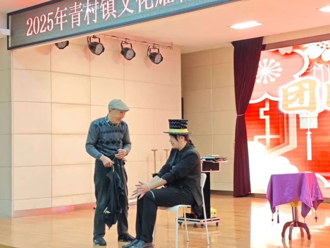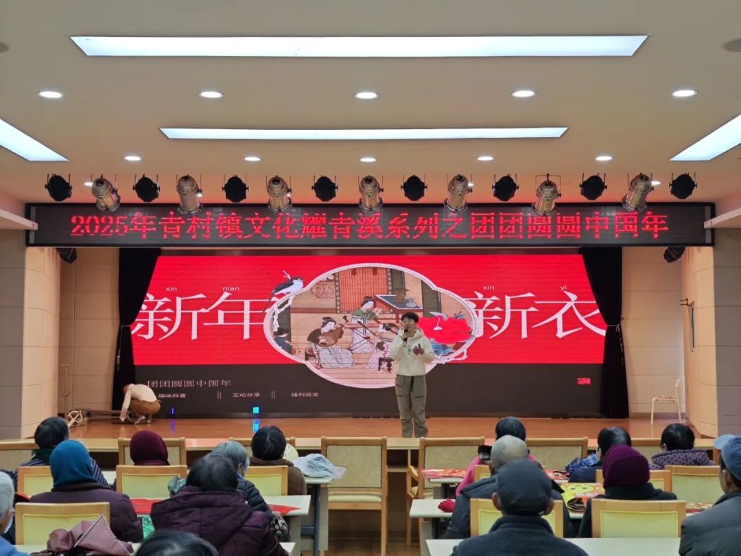 四季轮转,万象更新。在2025年春节来临之际,青村镇开展“‘青’梅煮酒迎春至,‘村’花烂漫贺岁新”2025迎新春嘉年华活动,旨在通过喜闻乐见的活动内容丰富群众精神文化生活,营造浓厚节日氛围,不断增强人民群众的文化获得感、幸福感。 “团团圆圆中国年”文艺演出 合唱《幸福中国一起走》 杂技《信念-勇攀高峰》 趣味讲座《穿新衣过大年》 周边群众一早就来到了活动现场,聚在一起等待演出的开始。本次“团团圆圆中国年”主题演出以与众不同的视角讲述春节的民俗文化魅力,用暖心的、缤纷的、喜庆的、团圆的节目与观众一起探索浓郁的年味儿,热热闹闹欢度中国年。 魔术《心灵感应》 滑稽戏 小品表演、沪剧演出、传统舞蹈 …… 一段段精彩的演出 掀起一场场掌声与笑声交织的浪潮 迎新春群众活动 活动现场设置了多个趣味十足的游戏环节,有全家齐上阵开动脑筋去猜灯谜;也有心灵巧手的居民在学习非遗纸艺的同时,练习剪窗花;有把健康与祝福一起投入壶里的传统投壶游戏;还有需要静下心来,满怀着对新一年的期待写在红纸上的福字…… 灵蛇献瑞,欢庆新年。热热闹闹的新年活动寓意着人民群众对美好生活的期盼与向往,是对于“家”文化的传承。在“节日红”中感受快乐,在“团圆乐”中共度春节! 愿你 年年岁岁花锦簇 岁岁年年人团圆