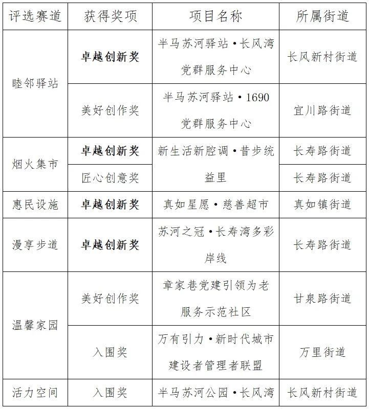 会上发布了2024年度上海“15分钟社区生活圈”优秀案例评选结果。经专家评审和公众投票,普陀区共有6个街道的8个项目,总计获得9个奖项。尤其是份量最重的“卓越创新奖”(一等奖),普陀区在十个赛道中共计斩获四席,获奖数量和质量在全市均名列前茅。